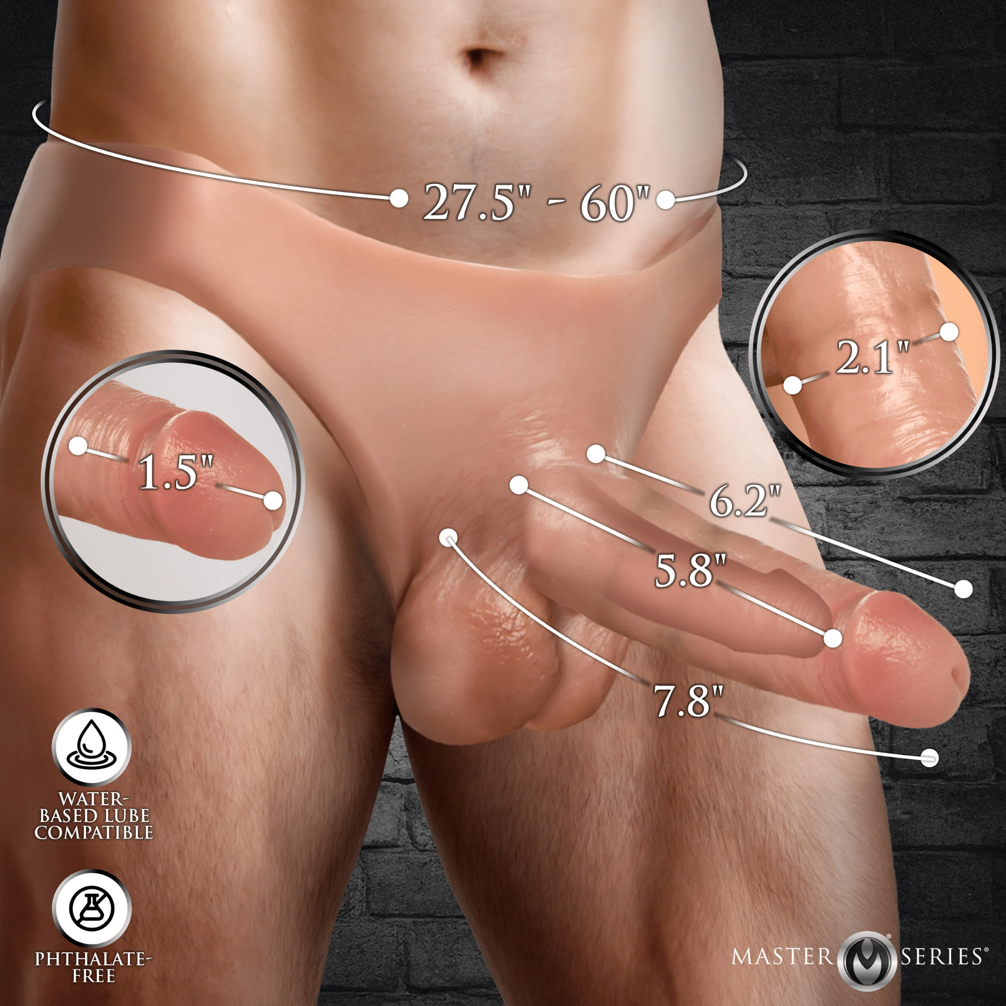 With its glossy, skin-like finish, pink head, raised veins, and textured balls, this strap-on mimics the natural appearance of a real member. The 1.5-inch solid tip provides firmness, while the hollow shaft allows you to slip your own rod inside, instantly boosting your size and girth for a more fulfilling experience.