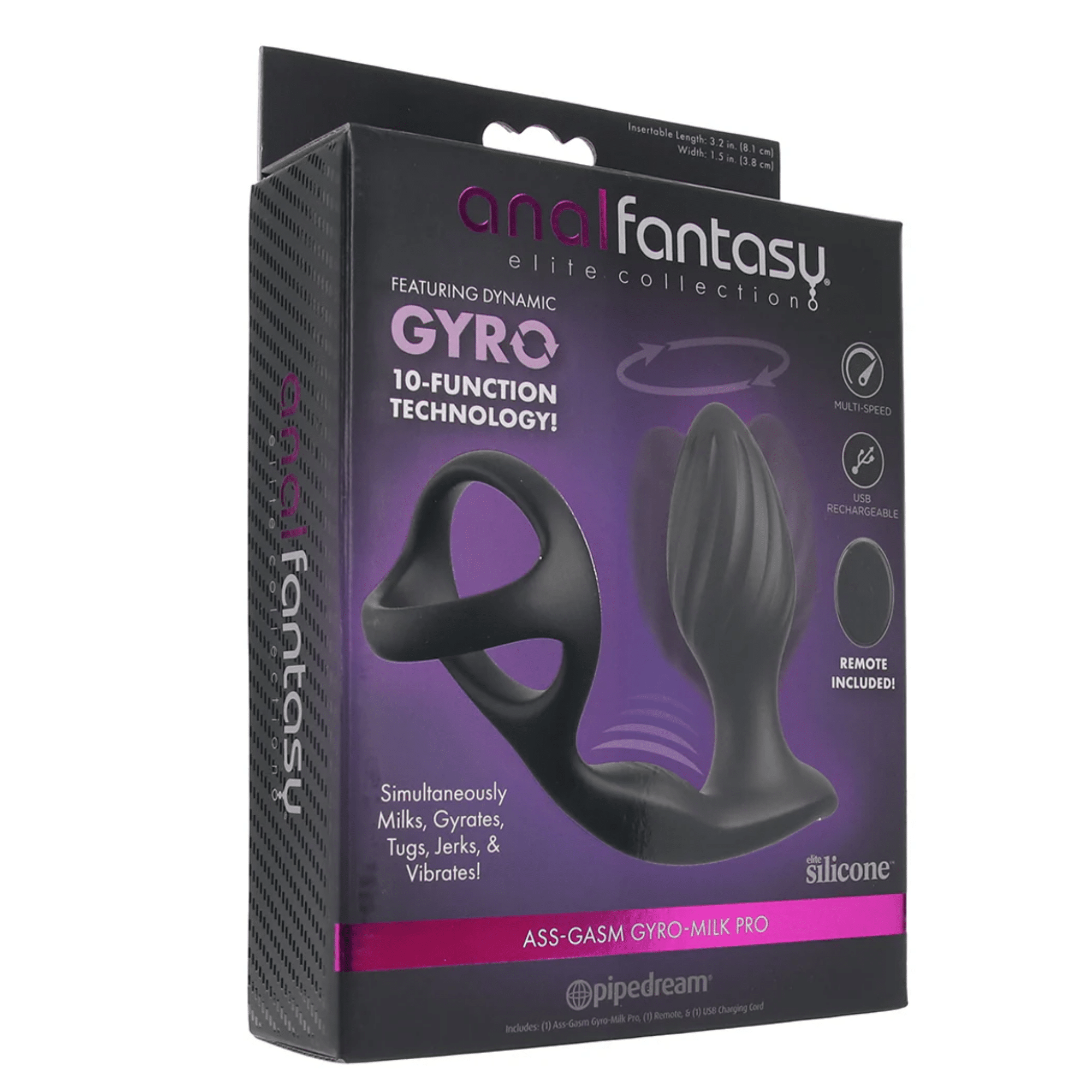 The Ass-Gasm Gyro-Milk Pro features a textured gyrating plug with 10 powerful functions of vibration and motion, expertly crafted to massage your prostate while rocking your perineum. The unique “Gyro-Milk” action rhythmically tugs the built-in C-ring, creating incredible pressure that enhances blood flow, resulting in harder, longer-lasting erections. Every thrust, pulse, and swirl is designed to tease, please, and completely satisfy.