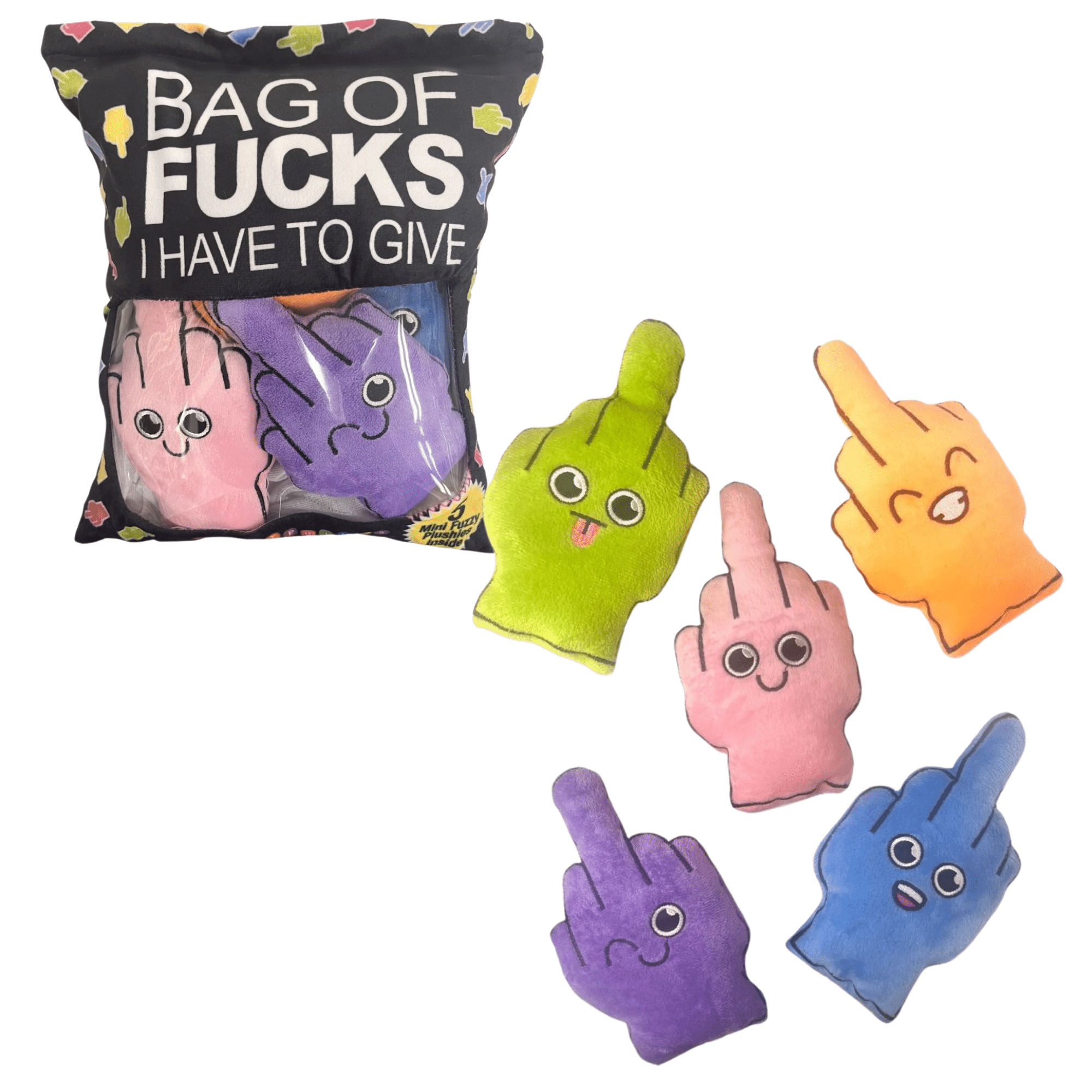 • Includes 5 plush FU fingers – A handful of fun, literally.