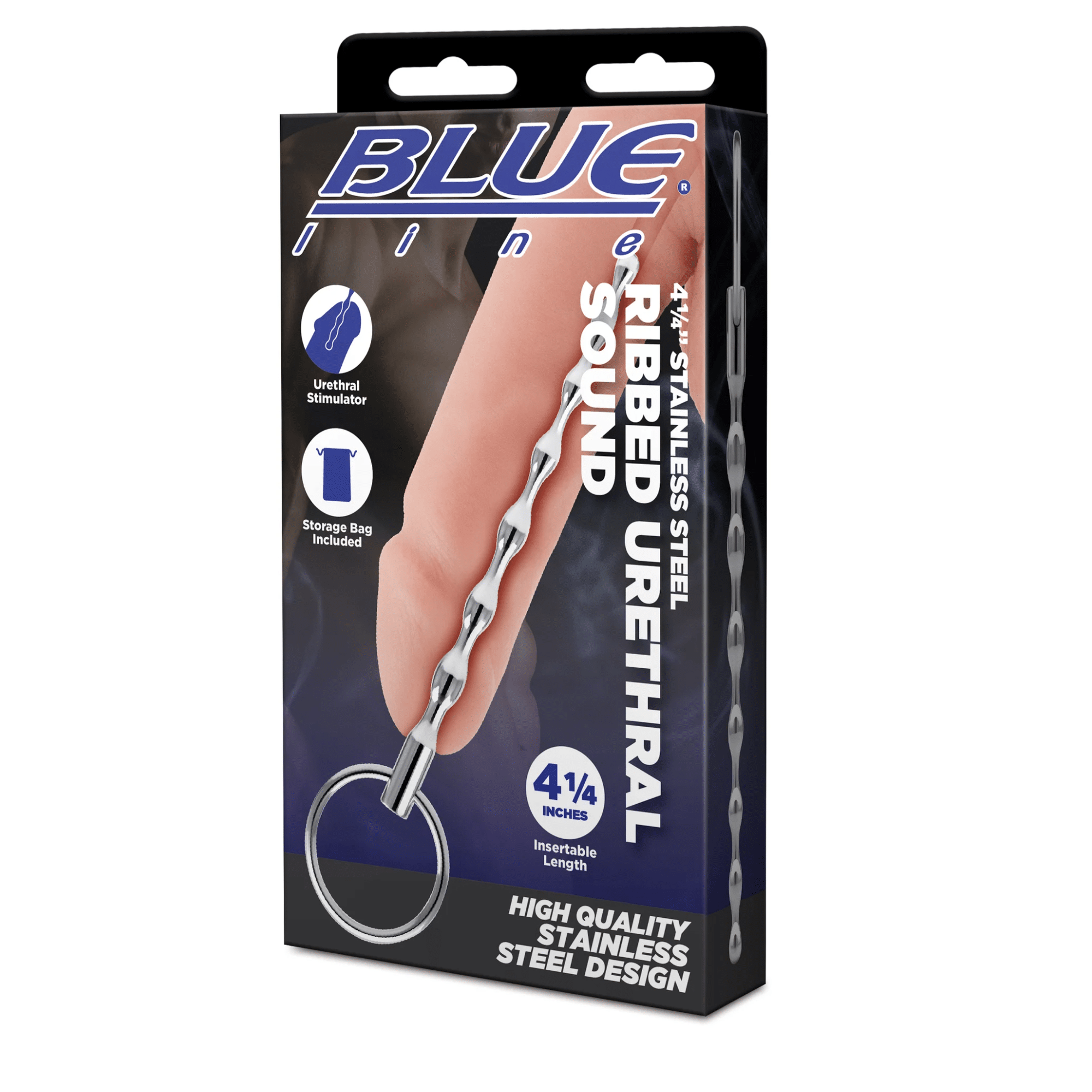 Dive into the world of intense pleasure with the Blue Line 4.25-inch Stainless Steel Ribbed Urethral Sound, designed to deliver mind-blowing sensations and unforgettable urethral stimulation.