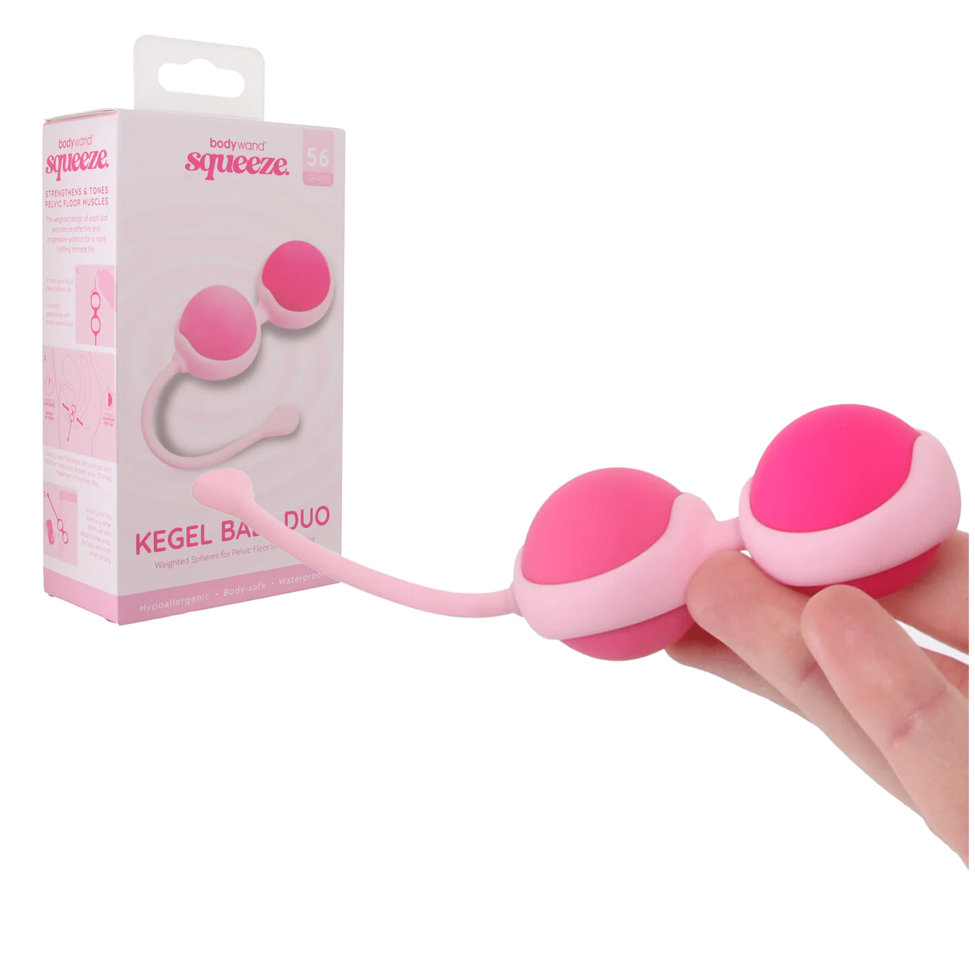 Start your journey to a healthier pelvic floor and a more fulfilling intimate life with the BodyWand Squeeze 56g Pelvic Floor Trainer Kegel Ball Duo. Specifically designed to enhance your pelvic strength, this high-quality Kegel ball set offers a versatile and progressive workout for women seeking improved intimate wellness. The ergonomic design ensures comfort, while the weighted Kegel balls target and strengthen your pelvic muscles effectively.