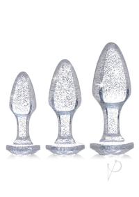 Expert anal players will appreciate the ease of which to warm up their ass for further fun with this Glittery set of plugs! Choose the size that matches your comfort level and surprise your lover when you pull your pants down with this dazzling anal gem!