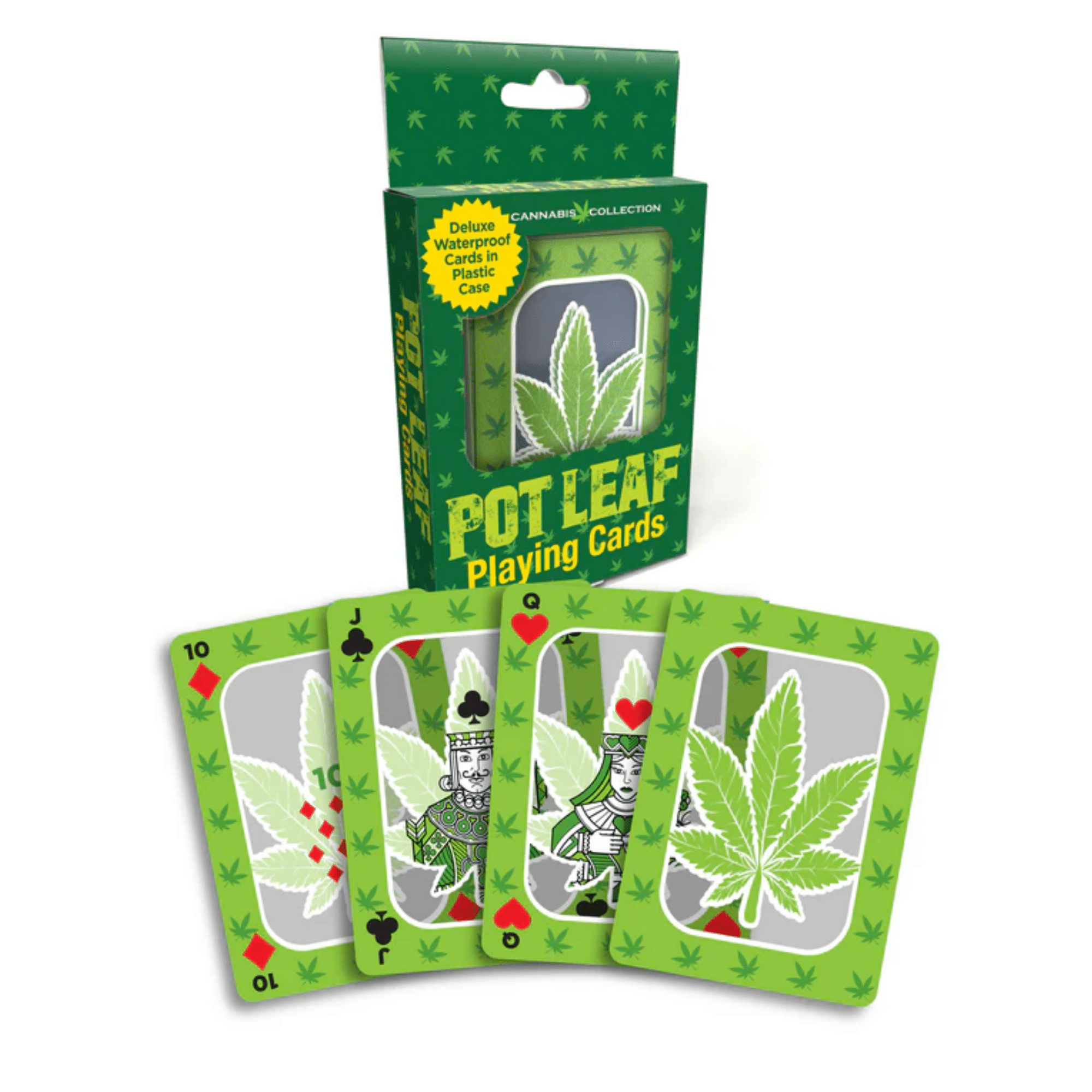 Each card is printed with a vibrant cannabis pot leaf design, adding a bold and unique touch to your collection. Made from premium waterproof plastic, these cards are ready to take on splashes, spills, and even a little rain. Say goodbye to soggy cards and hello to a deck that’s as resilient as it is eye-catching.