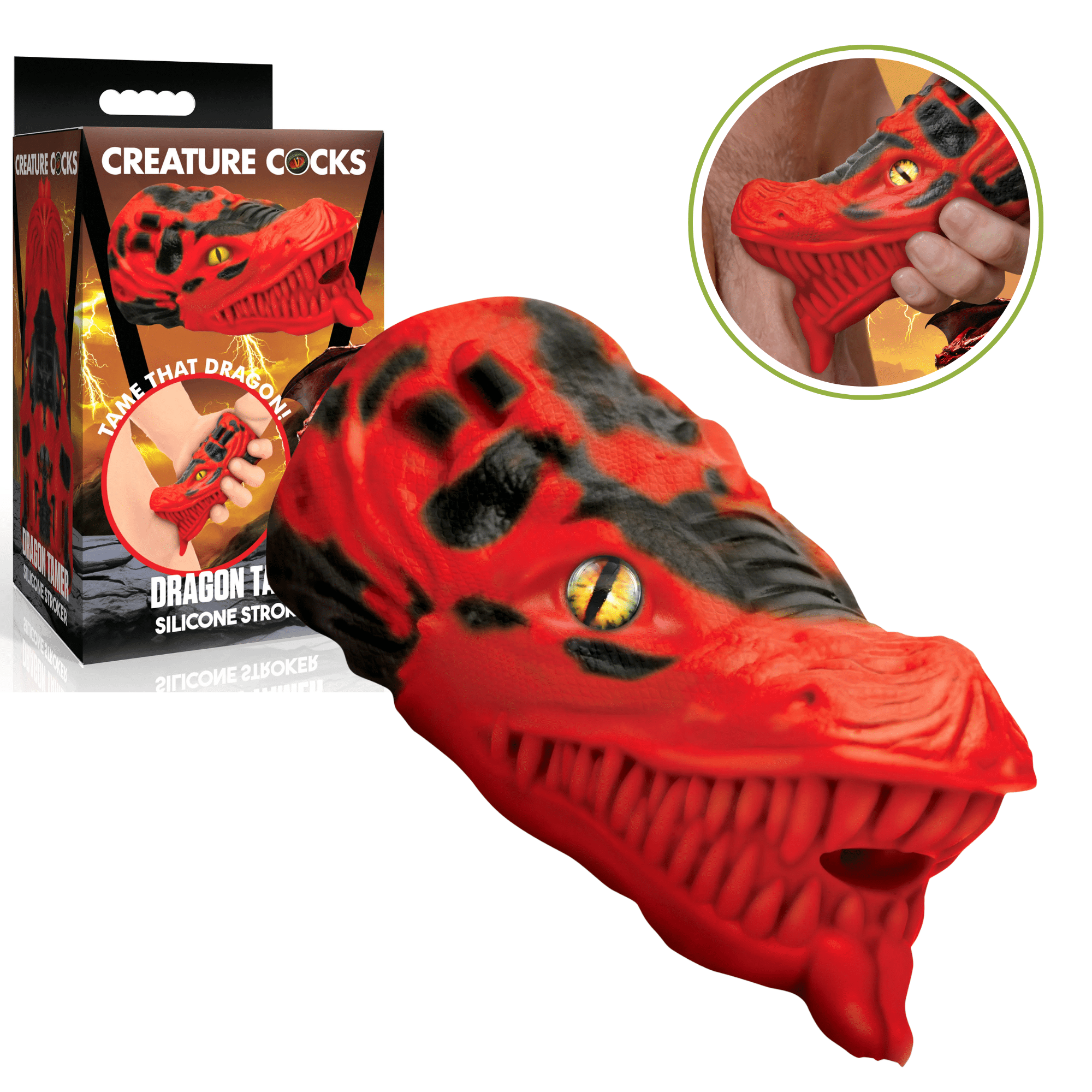 Unleash your fantasies with the Creature Cock Dragon Tamer Silicone Stroker Fantasy Masturbator, a one-of-a-kind pleasure toy designed to transport you into a realm of fiery passion and mythical desire. Shaped like a ferocious dragon’s head—complete with long teeth, an intimidating snout, and a seductively extended tongue—this Creature Cock Dragon Tamer Silicone Stroker Fantasy Masturbator dares you to take control and tame the beast on your terms. Made from premium, body-safe silicone, this stroker offers a silky-smooth feel while ensuring a worry-free, phthalate-free experience for your intimate play.