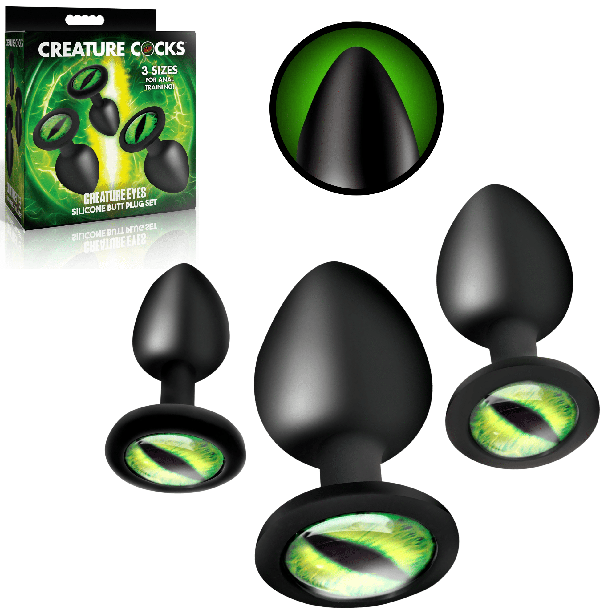Indulge in your wild side with the Creature Eyes Green Eye Silicone Butt Plugs Set—a fantasy-inspired pleasure set that delivers both visual allure and satisfying stimulation. Designed for adventurous play, this set features a vivid green cat-eye at the base, creating a mesmerizing effect that adds a fun, erotic twist to your intimate moments. Whether you’re playing solo or showing off to a partner, this unique piece turns every encounter into an unforgettable fantasy.