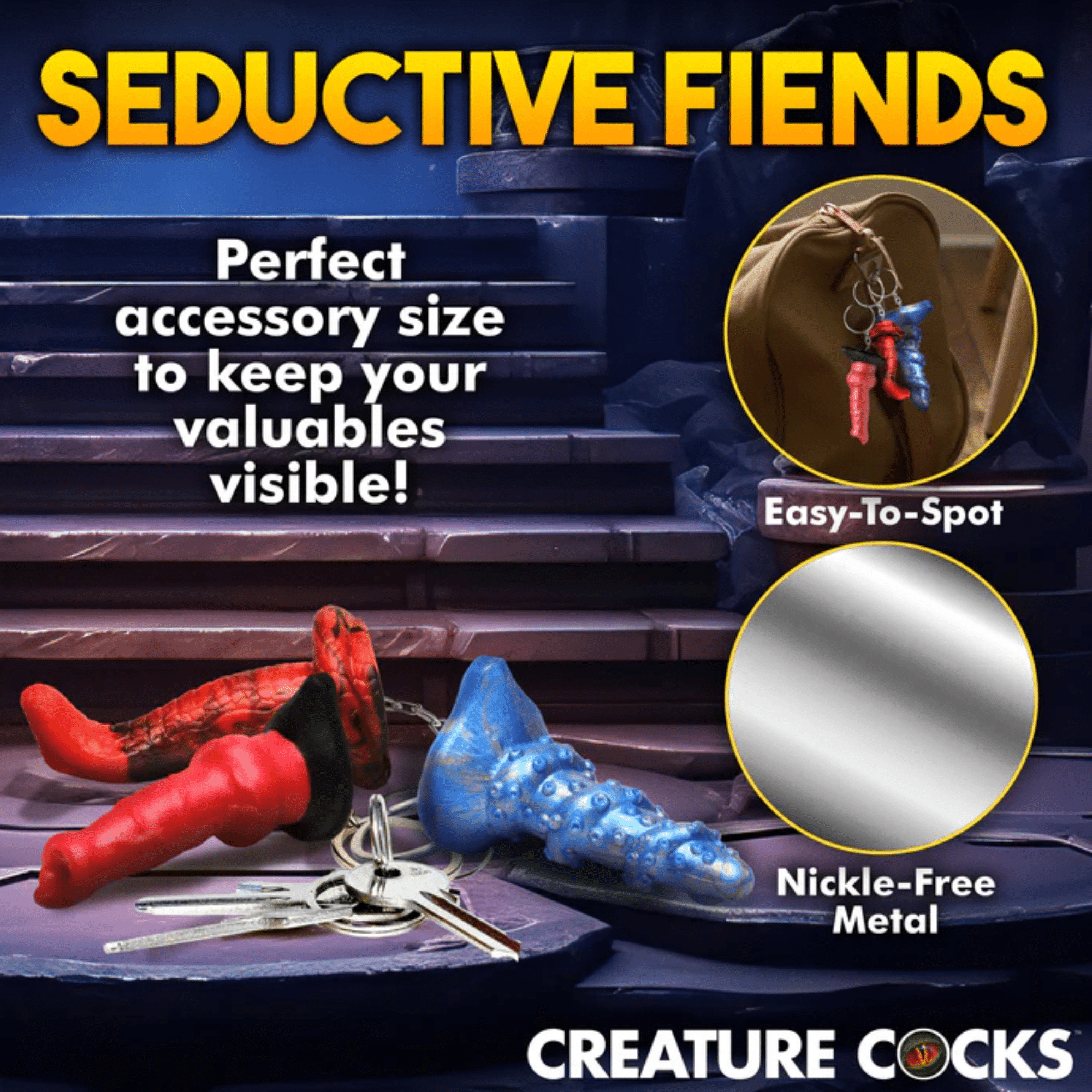 Let your playful side shine with our Mini Fantasy Dongs Keychain Set, featuring three adorable miniaturized dildos on a keychain for your enjoyment. Choose between the Hell-Hound, Lord Kraken, and King Cobra dildos to add a touch of fantasy to your everyday life.