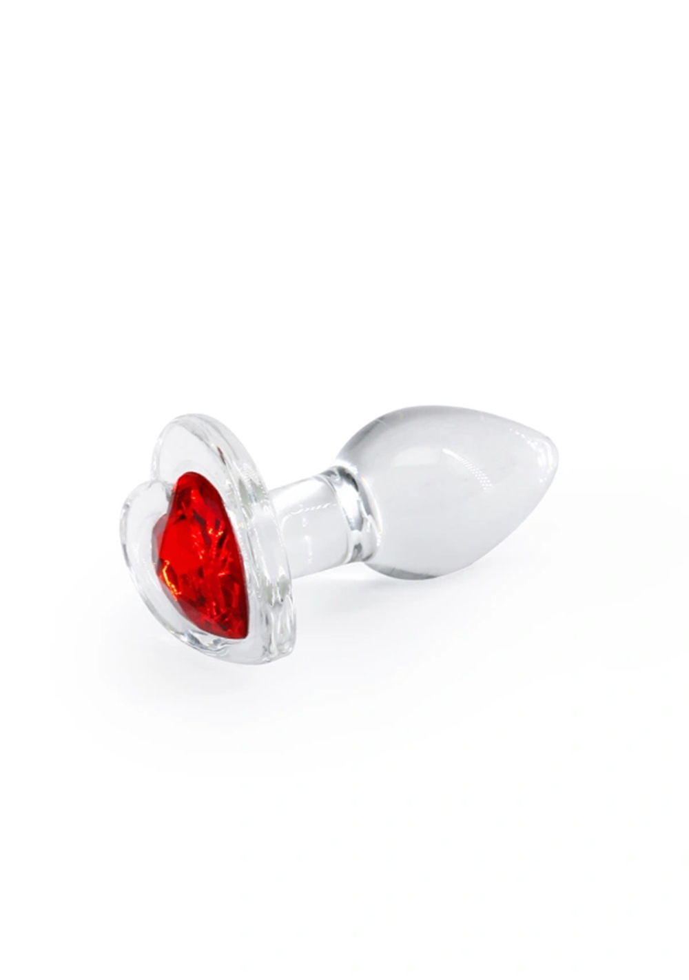 Hearts are red and plugs are fun. Our borosilicate glass plugs are adorned with red hearts for a passionate encounter and exciting stimulation.