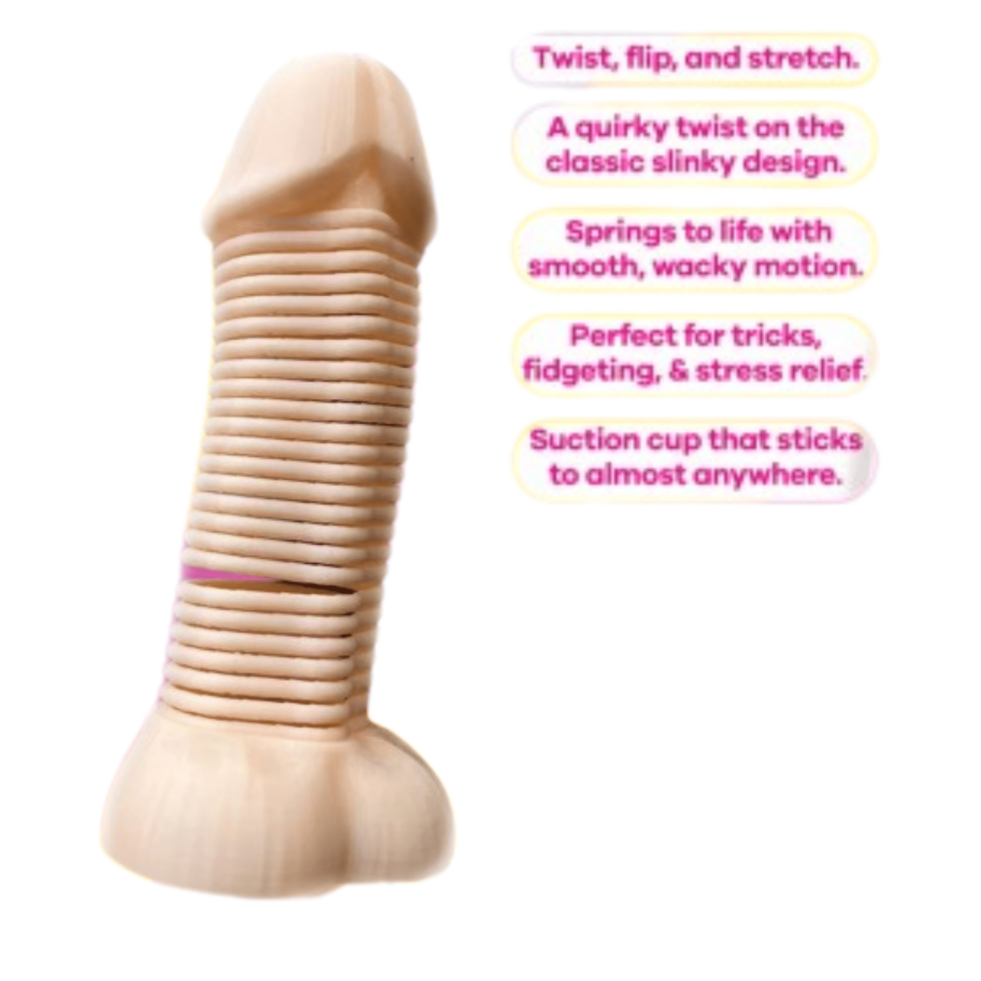 The Dinky Slinky Pecker Spring Stress Relief Suction Cup Dildo is a playful, cheeky twist on the classic slinky design. This fun and quirky toy springs to life with smooth, bouncy motion, offering endless entertainment. Whether you want a stress-relief fidget, a hilarious gag gift, or just some silly bedroom fun, this novelty Dinky Slinky Pecker Spring Stress Relief Suction Cup Dildo is guaranteed to keep the laughs (and pleasure) flowing.