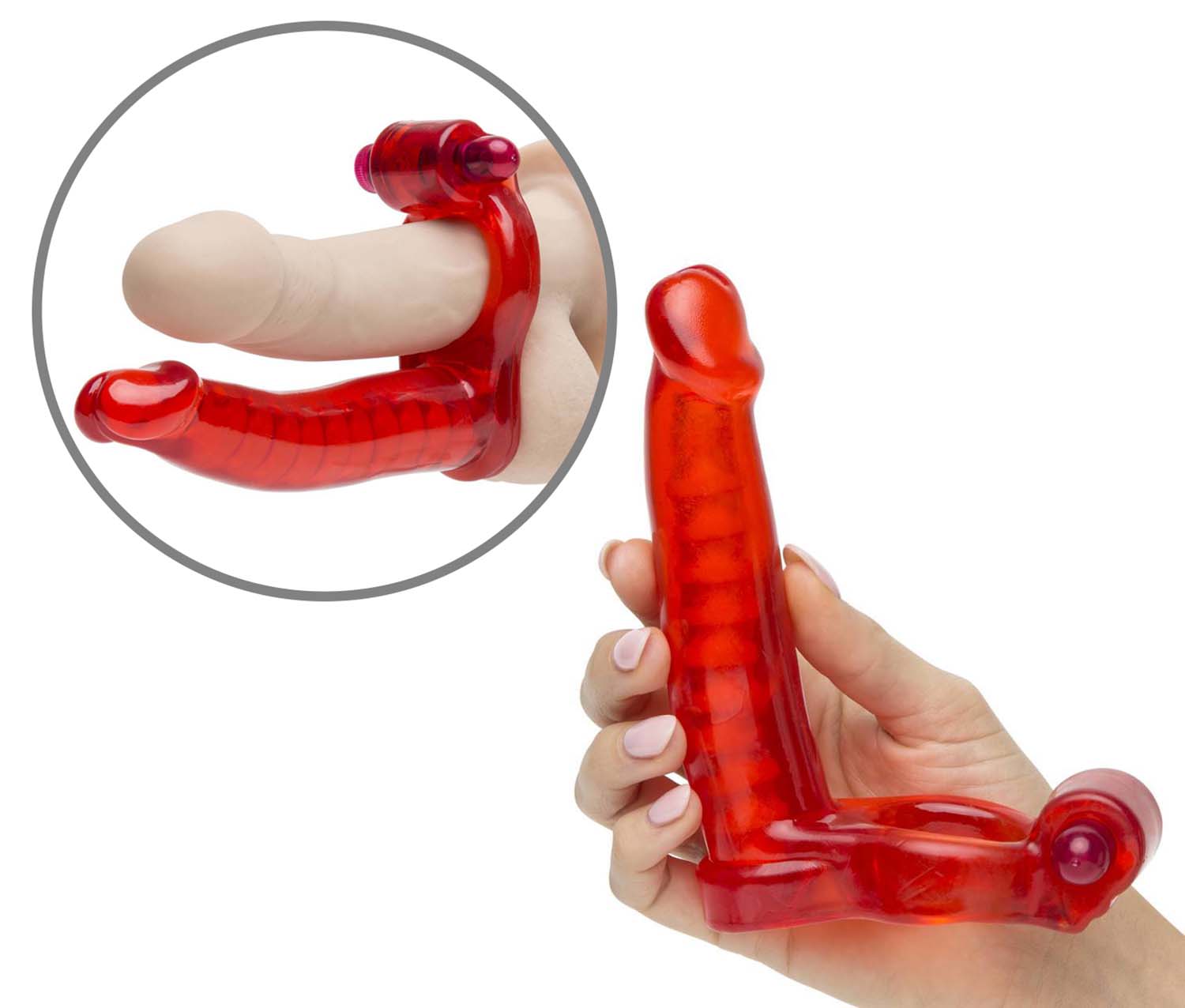 Fully bendable vibrating shaft with variable speed bullet. Clitoral stimulator with variable speed bullet. Fully adjustable waist and thigh straps. Waterproof. Material: Item-PVC, bullets-ABS. 3 AG13 batteries for each bullet included. Length: Shaft-5.75, Bullets-2.25.