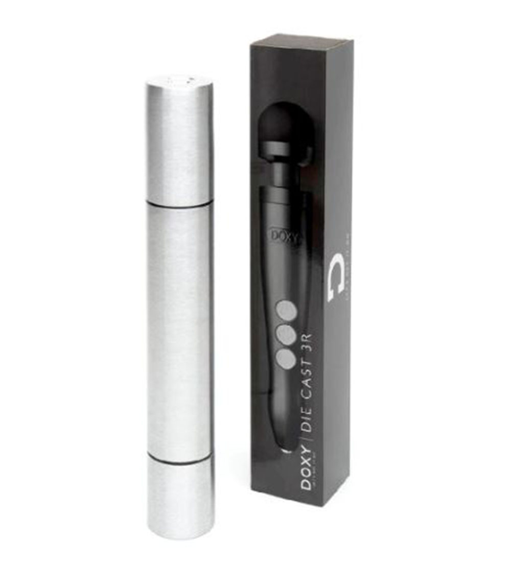 The Doxy Diecast 3R Matte Black Rechargeable Vibrating Wand Vibrator with Screw-On Head is smaller than the other wands in the Doxy line at 11 inches long and just a 1.75 inch wide head on it. Its petite size vibrator is almost false advertising because the thing is super powerful with a different type of vibration than the other Doxy vibrating wand.