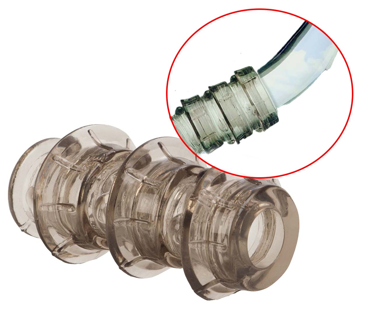 3.25 x 1.5/8.25 cm x 3.75 cm. Stretchy and comfortable ring adds support and girth. TPR.