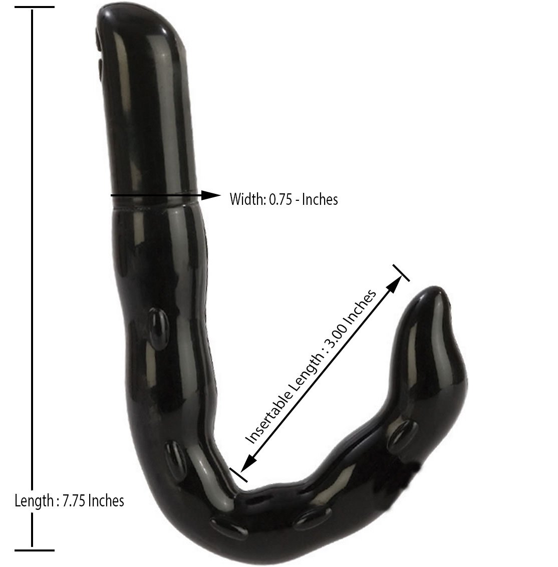 Endorsed by Dr. Joel Kaplan. Firm yet flexible stimulator angled for versatile prostate stimulation. 10 powerful functions of vibration, pulsation, and escalation. Push button controls with auto off. PVC (probe) ABS (cap). Batteries included (2 N). 3x .75/ 8 cm x 2 cm (able). 3x 1/ 8 cm x 3 cm (external stimulator).