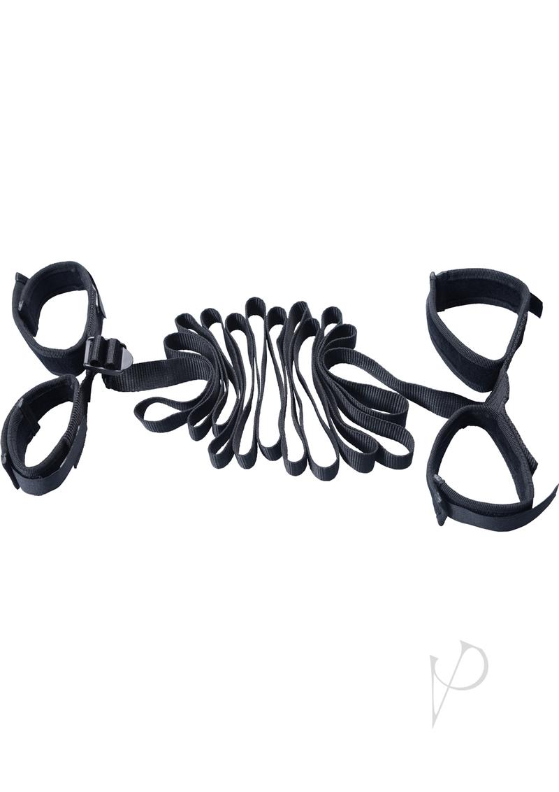 The Ensnare will keep your prey trapped and helpless to you. This kit contains a stretcher to be adjusted to fit all mattresses and different heights. The stretcher is easy-to-assemble and use, so entrapping of your prey takes your time, not installing the device. The four Velcro cuffs ensure comfort and are made of neoprene. This kit is travel friendly, making Ensnaring your partner available at any time you desire! Size Cuffs One size fits most Strap Length: Adjusts up to 82