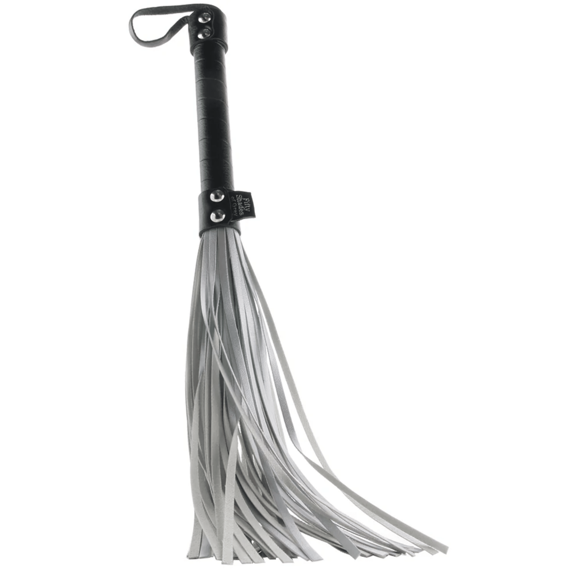Part of the official Fifty Shades of Grey collection, this satin flogger embodies the passion and sophistication that fans of the series desire. The striking silver and black design adds a touch of elegance, making it just as beautiful to display as it is exciting to use.