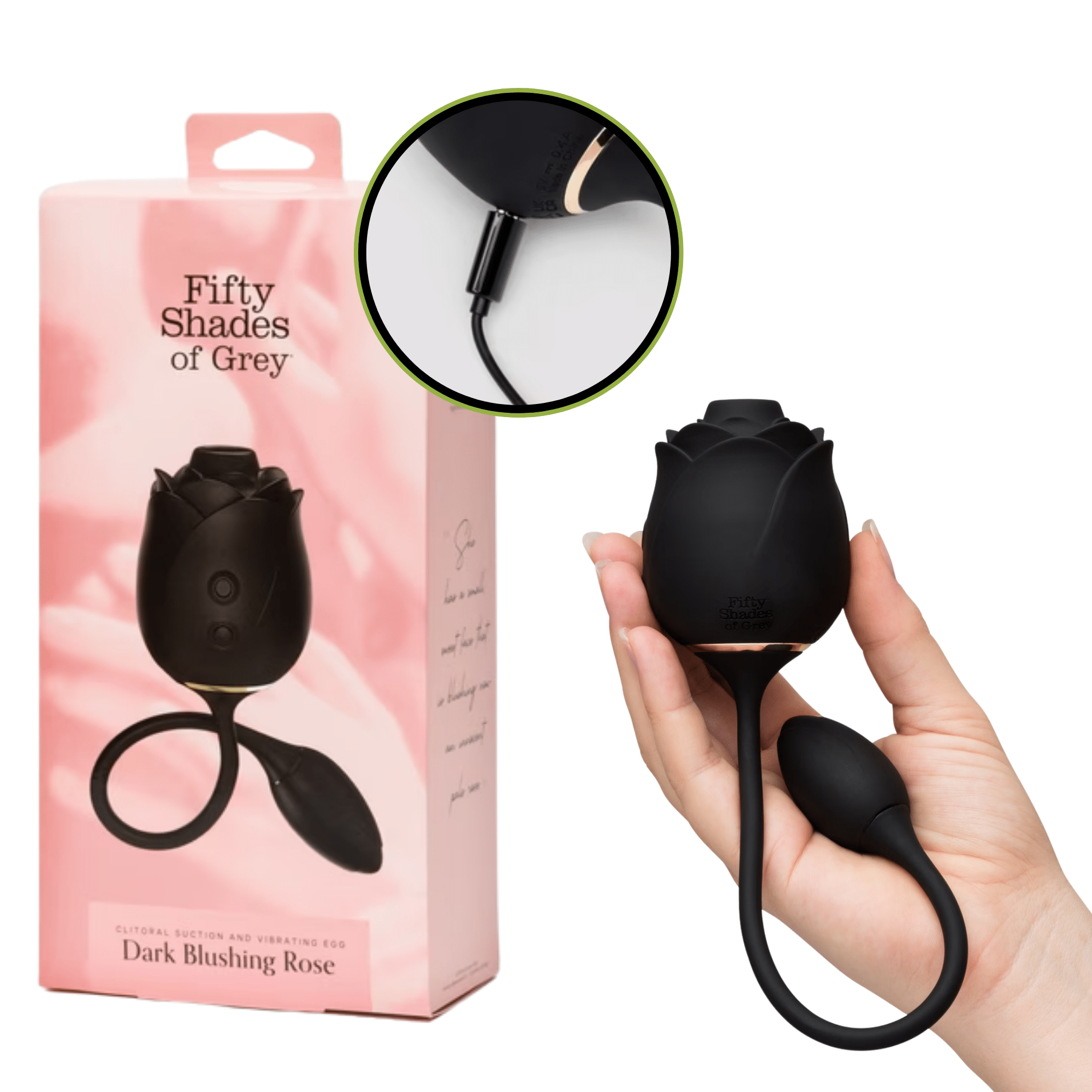 • This sensual duo is fully rechargeable and waterproof, allowing for versatile play wherever your desires lead — from the bedroom to the bath. Whether for solo pleasure or shared intimacy, the Fifty Shades of Grey Dark Blushing Rose Clitoral Suction Stimulator and Vibrating Egg invites you to explore boundless passion and discover your most blushing moments.