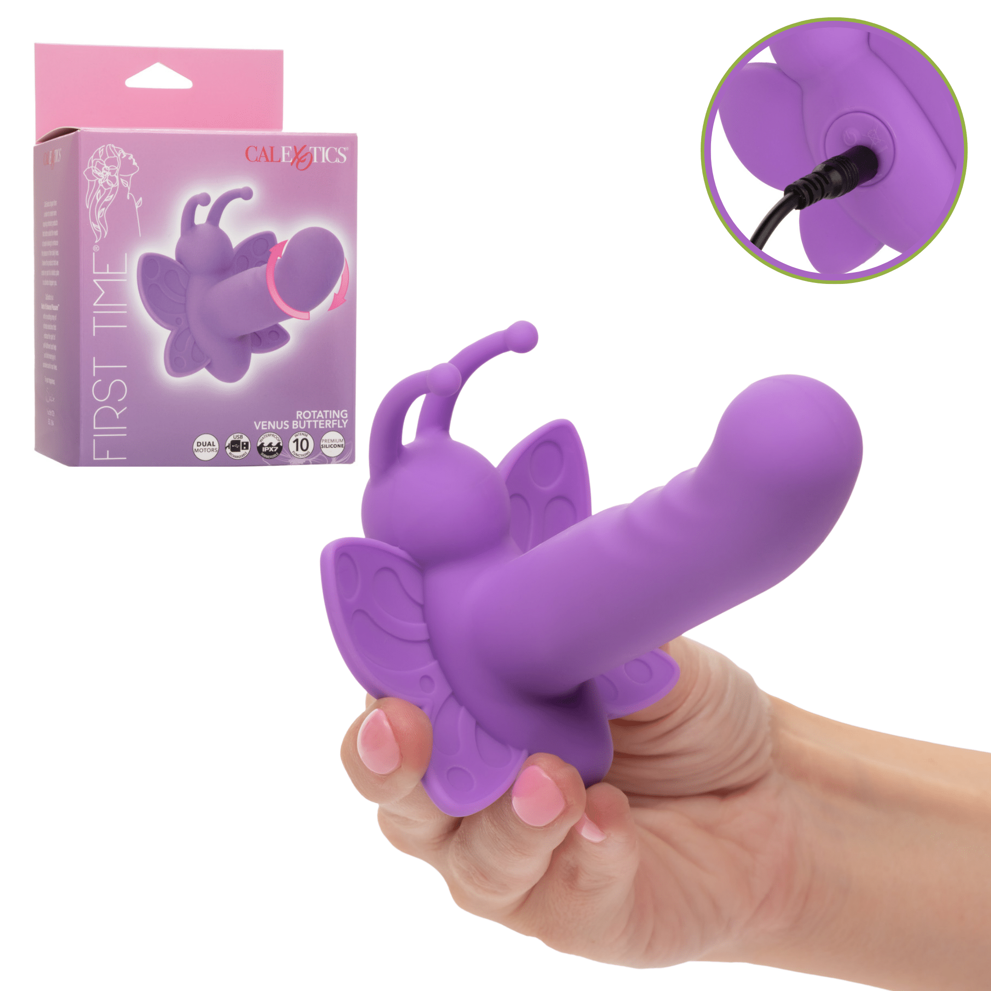 Prepare to experience the ultimate in intimate pleasure with the First Time Rotating Venus Butterfly Silicone Vibrator.