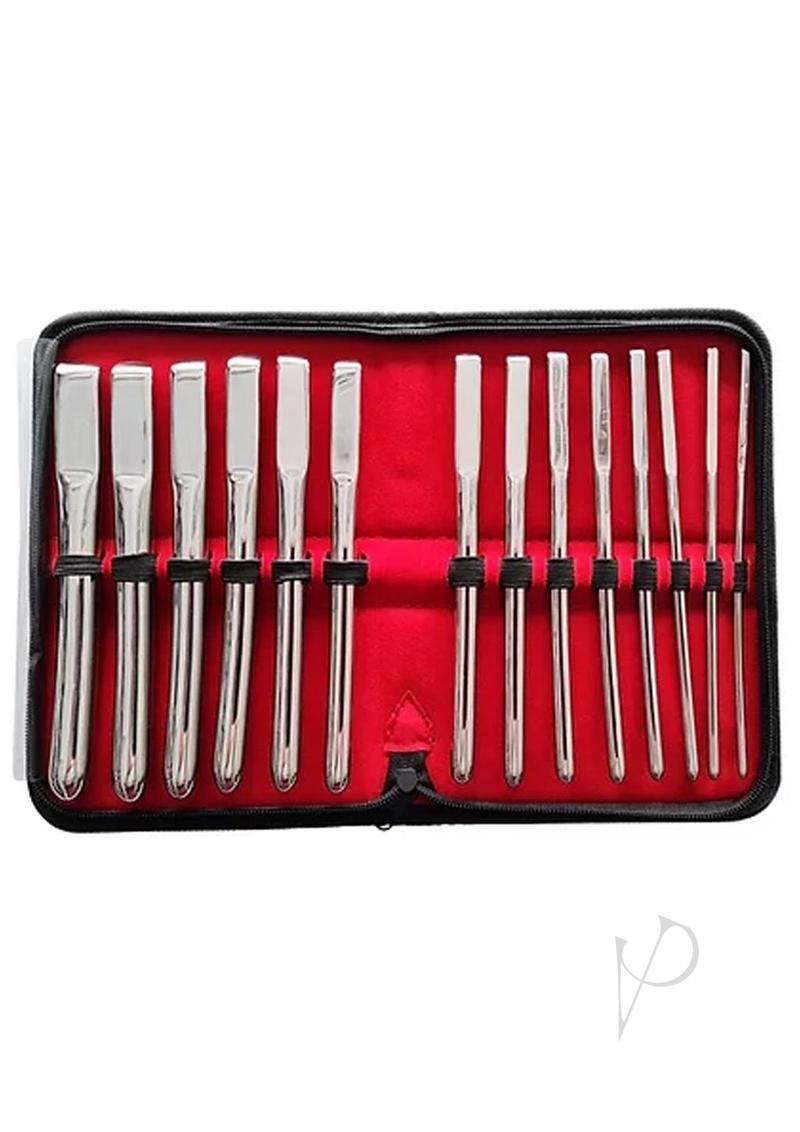 Single-ended stainless-steel 14 piece set of Hegar Uterine Dilators.Slightly curved 3mm to 17mm.