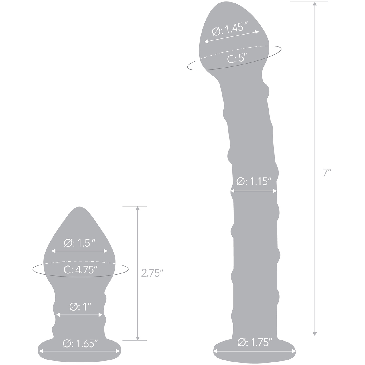 Twist and tantalize with our Gläs Swirly Glass Dildo & Glass Butt Plug Set. Spiral into a euphoria of double penetration with two textured, bulbous instruments designed to hit the P-spot and G-spot simultaneously. Use both together for vaginal D-P play, or interchange them anally for a backdoor bonanza of indulgence.