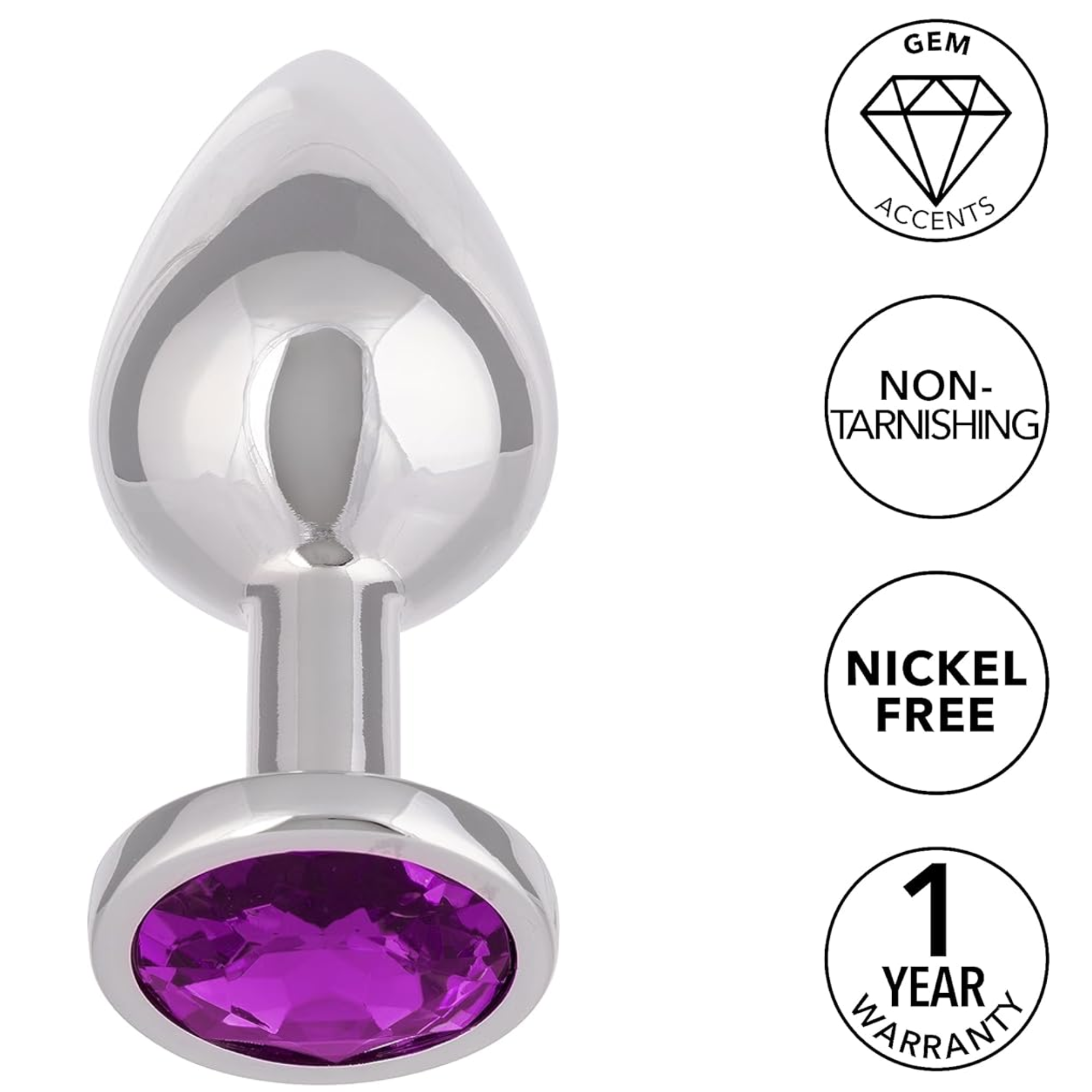 A masterpiece of pleasure and elegance that will elevate your intimate moments to new heights. This exquisite anal plug is meticulously designed to provide you with seamless metallic pleasure, streamlined stimulation, and gem-accented elegance—all while prioritizing nickel-free quality for your peace of mind.