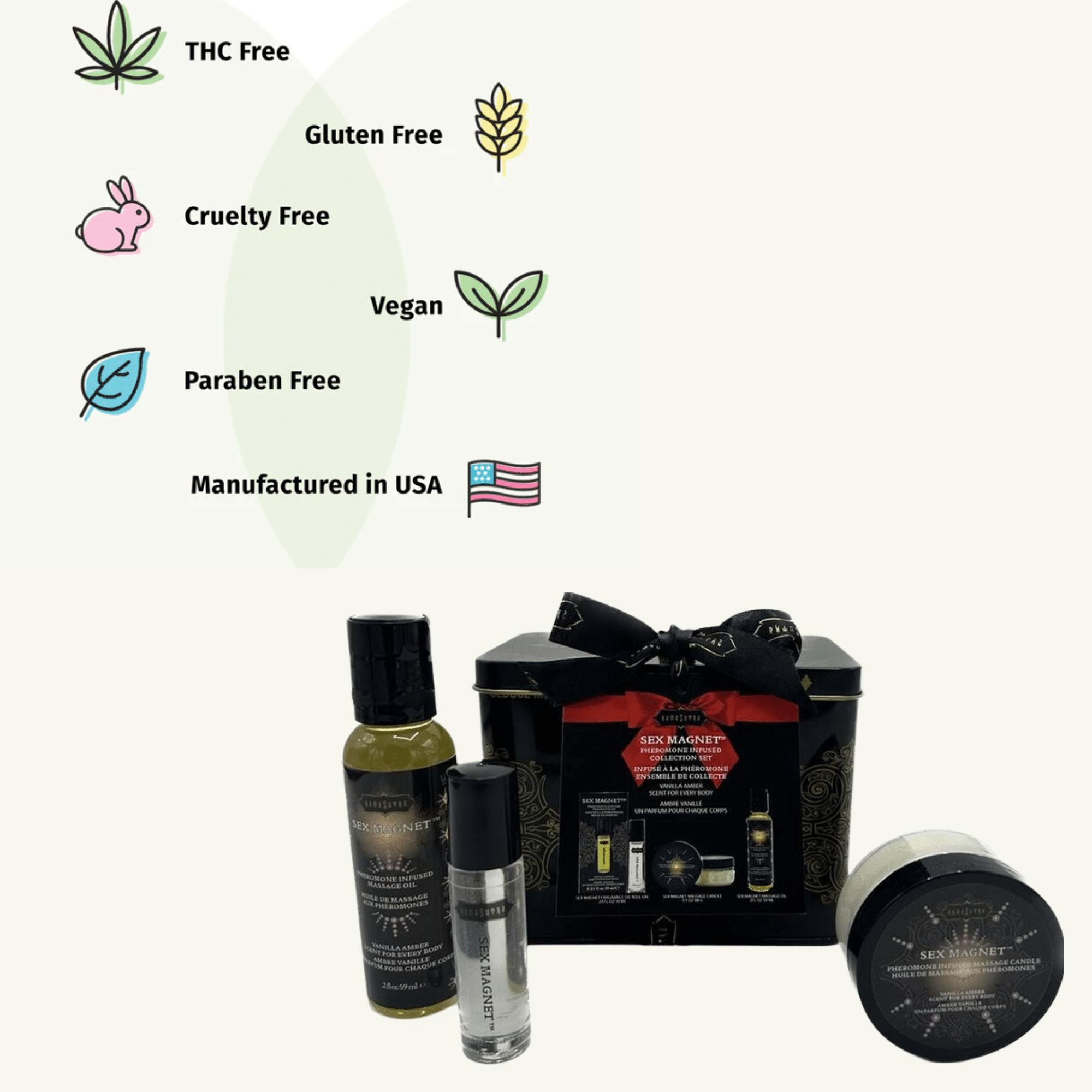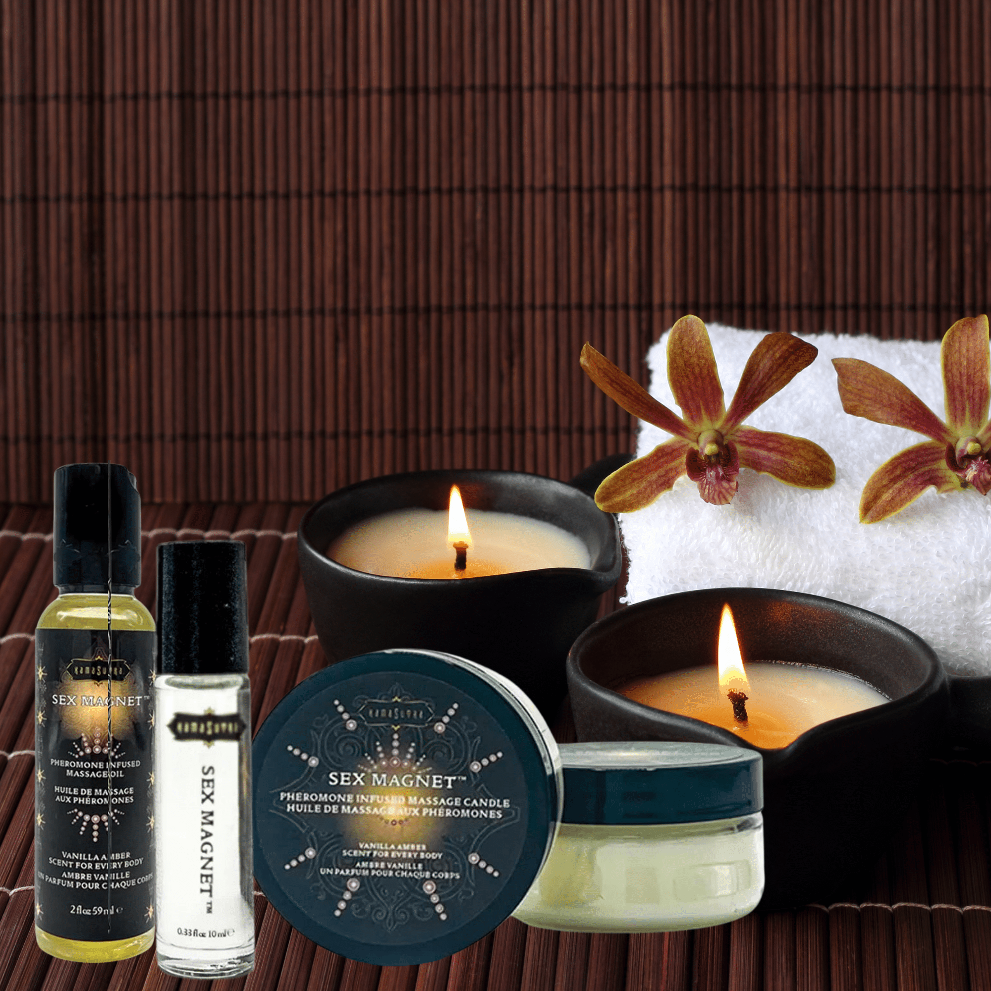 Indulge in the enchanting power of our Sex Magnet Collection Set, featuring three luxurious products infused with our signature sexy vanilla amber scent. Each item is unisex and suitable for all bodies, making it a versatile choice for anyone looking to enhance their intimate moments.