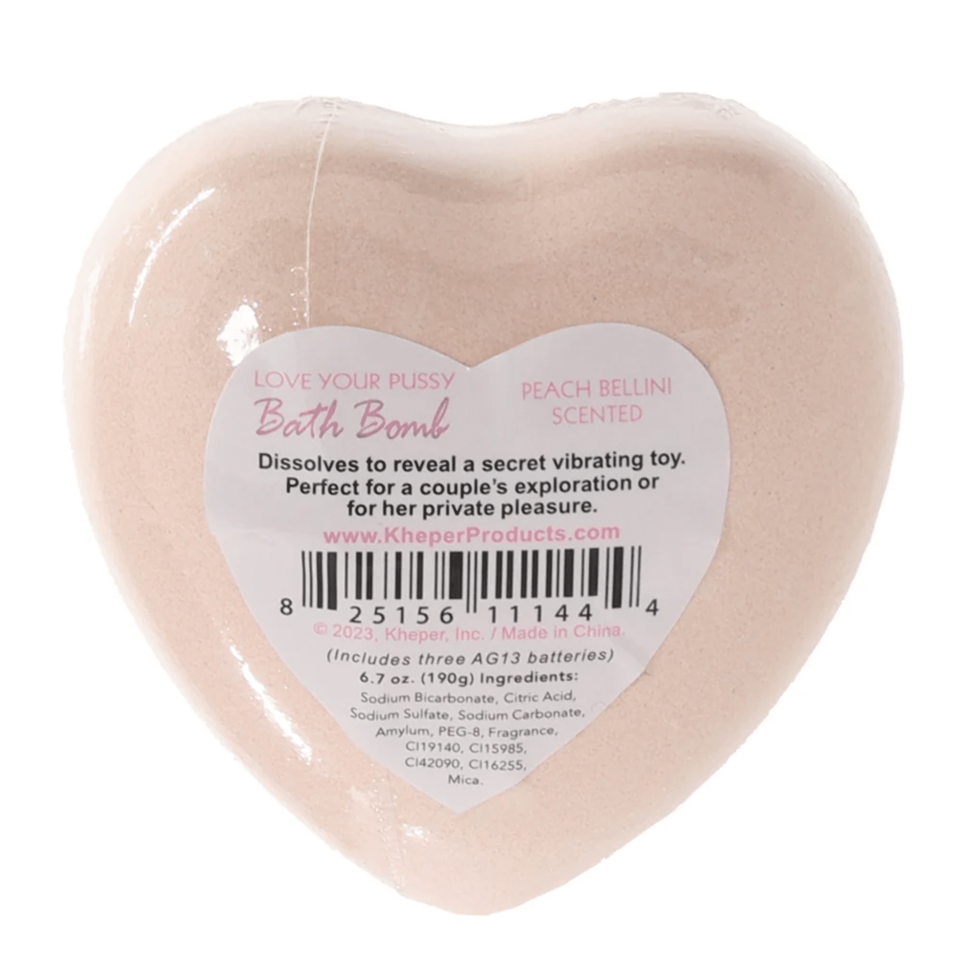 Celebrate, love, and enjoy your pussy with the Kheper Games Love Your Pussy Sweet Scented Bath Bomb. Designed to enhance your bathing experience, this delightful bath bomb is infused with a peach bellini scent that creates a relaxing and arousing atmosphere. As it slowly dissolves in the water, it unveils a hidden vibrating toy, adding an exciting twist to your bath time.