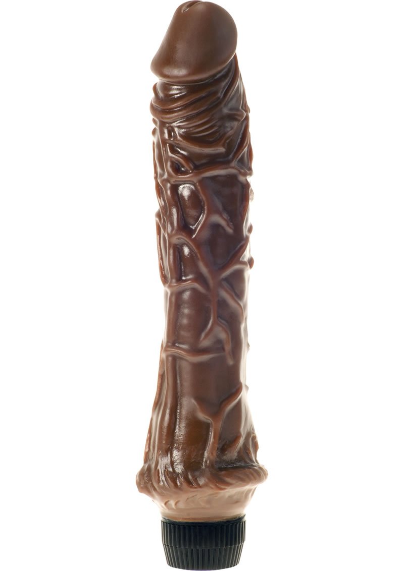 This brown vibe has a thin veined shaft. It has multi-speed controller at the base and will always satisfy. Requires 2 AA batteries (not included).