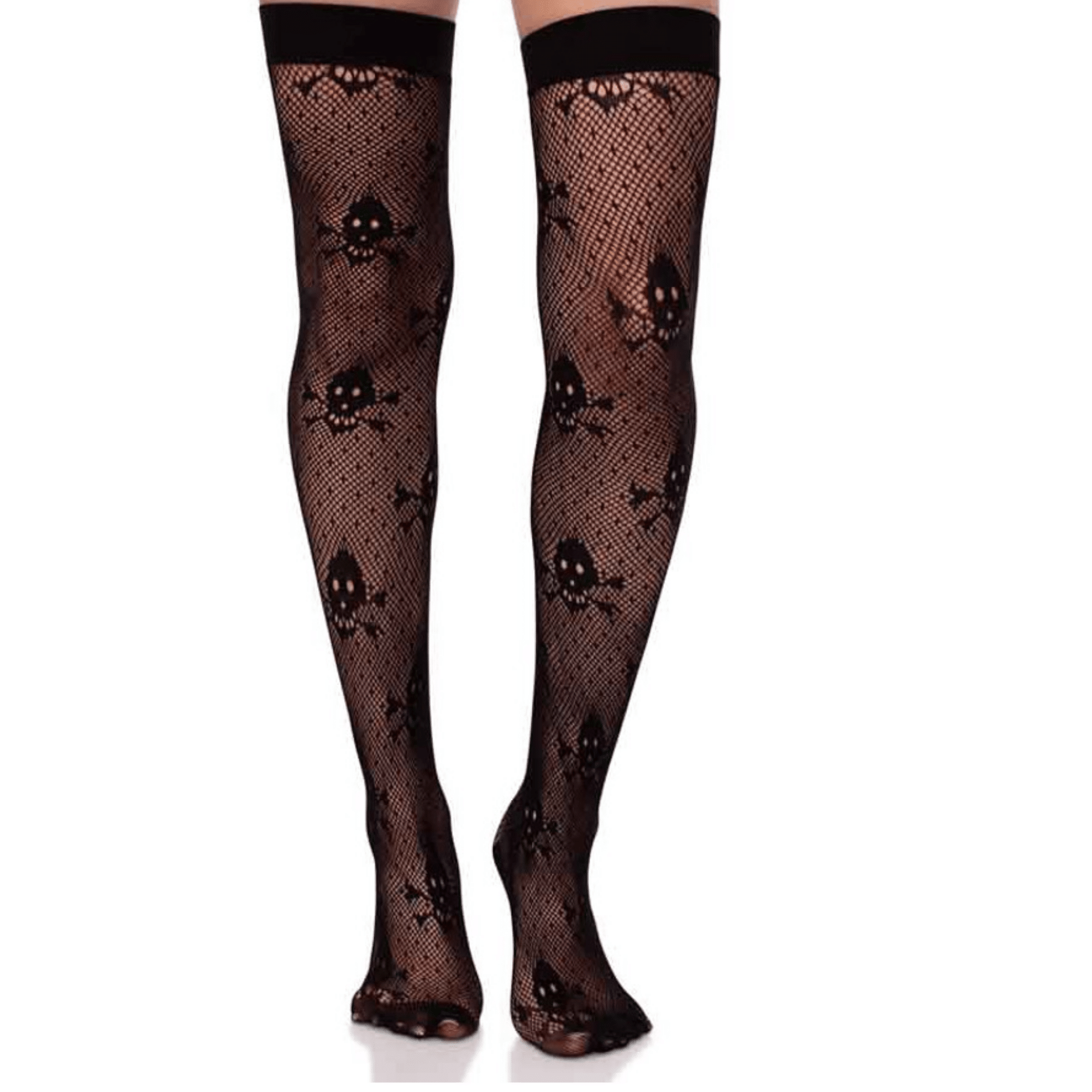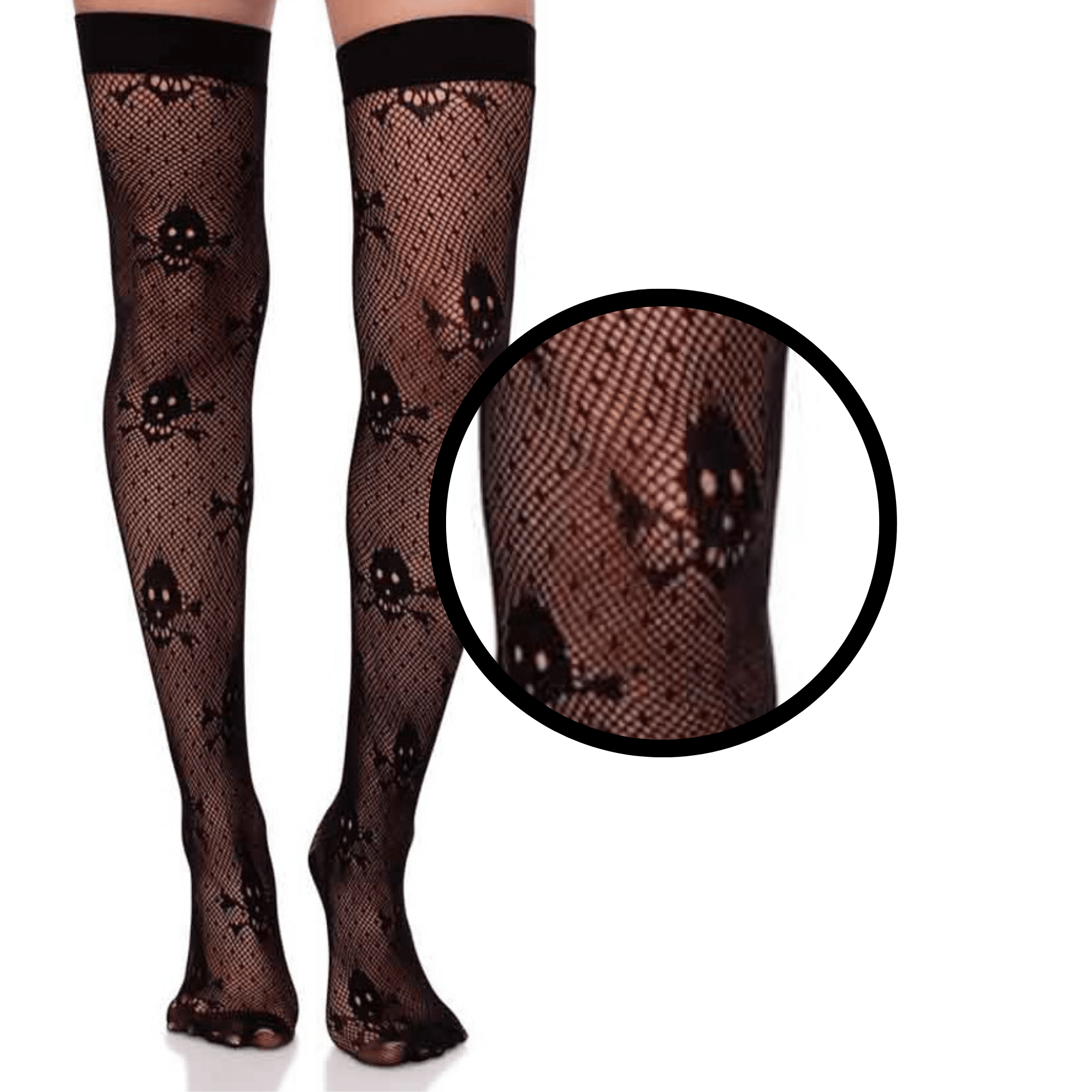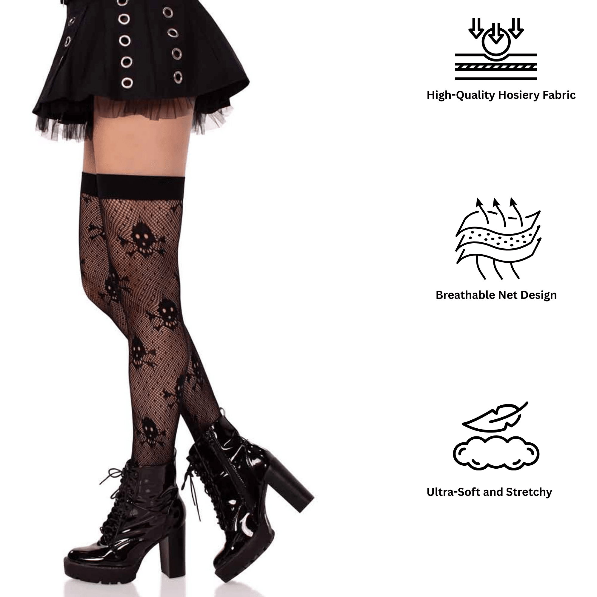 Be drop-dead gorgeous with the Leg Avenue Dotted Net Skull Micro Fishnet Hosiery Sexy Thigh Highs Black O/s — a must-have addition to your wardrobe for those daring moments. These thigh highs combine edgy style with playful charm, featuring a unique dotted net design and skull motifs that make them perfect for Halloween costumes or sultry lingerie ensembles. Crafted to turn heads and elevate your look, these sexy thigh highs blend comfort and allure flawlessly.