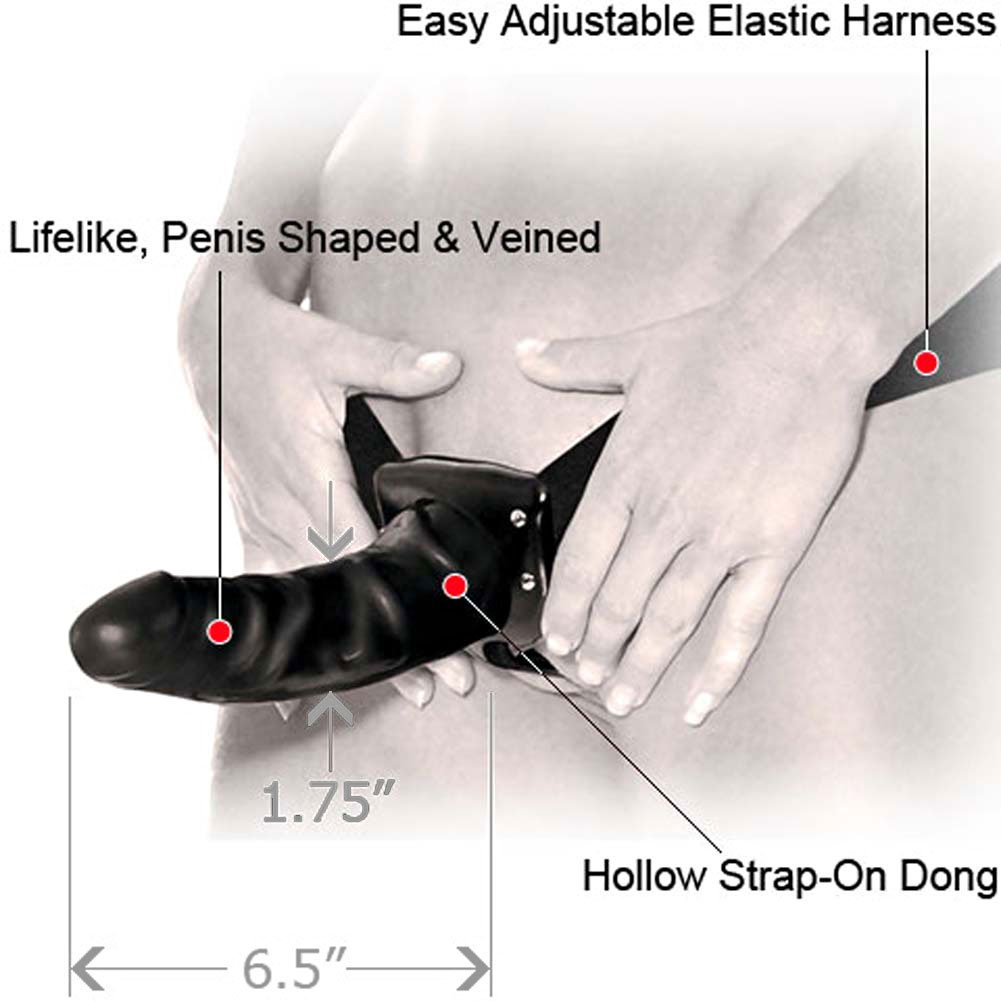 Fetish Fantasy Series Limited Edition. Say goodbye to those embarrassing midway letdowns with this Hollow Strap-on. Made with phthalate-free PVC, this Hollow Strap-on is perfect for beginners and can be worn by him or her. The PVC dildo remains firm during the fun and stays in place when the action heats up, delivering incredible strap-on sex for either partner.The comfortable elastic harness easily stretches to fit most sizes, while the smooth dildo teases and pleases. For him, the strap-on allows both partners to enjoy the arousal of face-to-face sex even after he came or if he couldn`t keep it hard. Just slip the Hollow Strap-on on and continue the passion right where you left off, even if you suffer from ED!For her, the hollow strap on can be worn like any ordinary strap-on and enjoyed for any type of strap-on sex. The dildo cleans up easily after the fun with Pipedream Toy Cleaner and warm water. Use plenty of Moist lubricant for an extra wet, extra wild encounter.