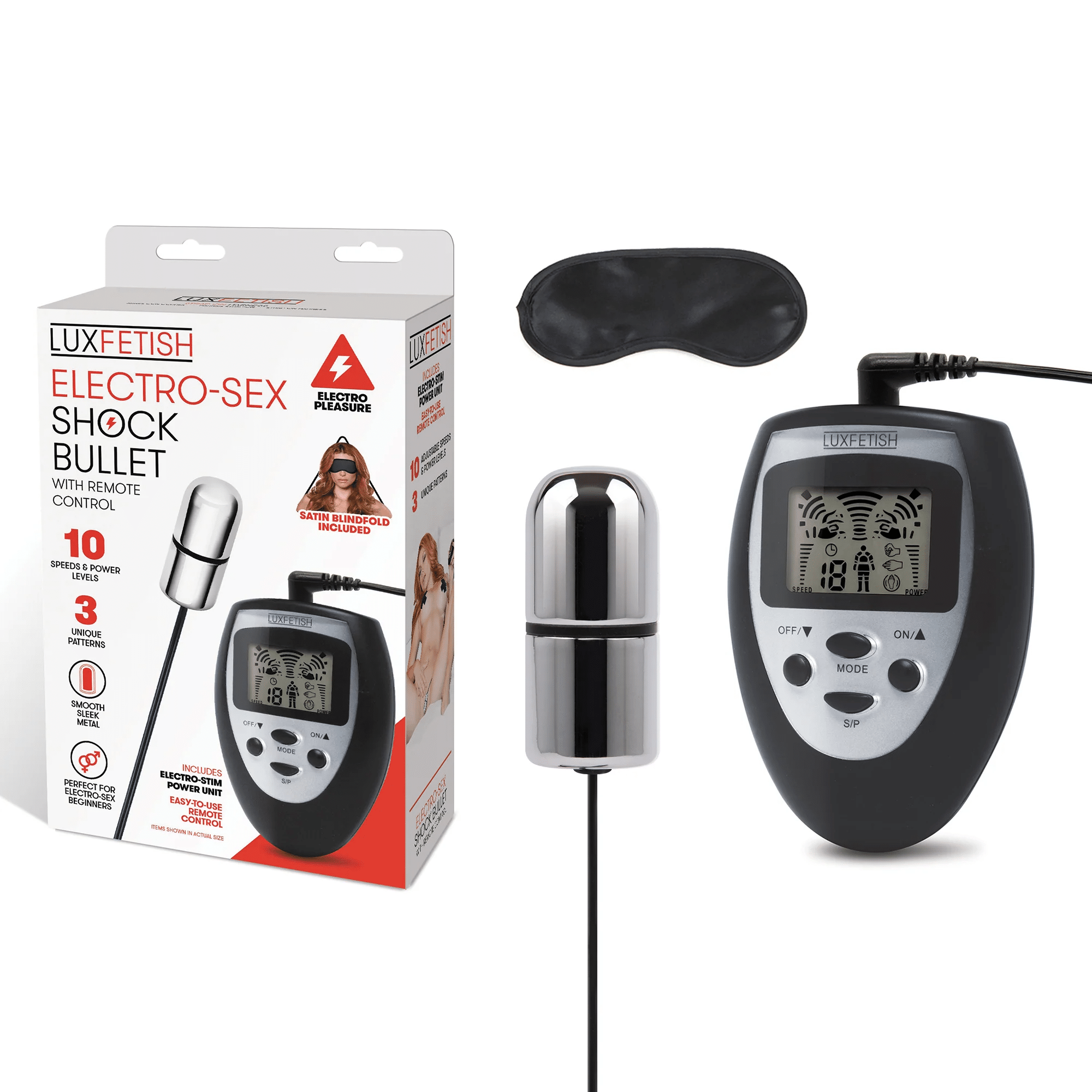 Elevate your intimate moments with the Lux Fetish Electro-Sex Shock Bullet with Remote Control, a state-of-the-art accessory designed for unparalleled pleasure. Crafted from smooth, sleek metal, this electro-sex toy is perfect for beginners, offering a thrilling combination of 10 adjustable speeds, 3 unique patterns, and a remote control for seamless control and exploration.