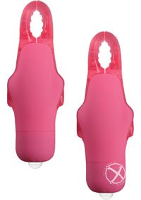 Wireless vibrating nipple clamps. Each clamp glows RED. Push button. Phthalates free. RoHS compliant. Material: ABS. 3 G13 cell batteries in each clamp included. Length: 2.9375.