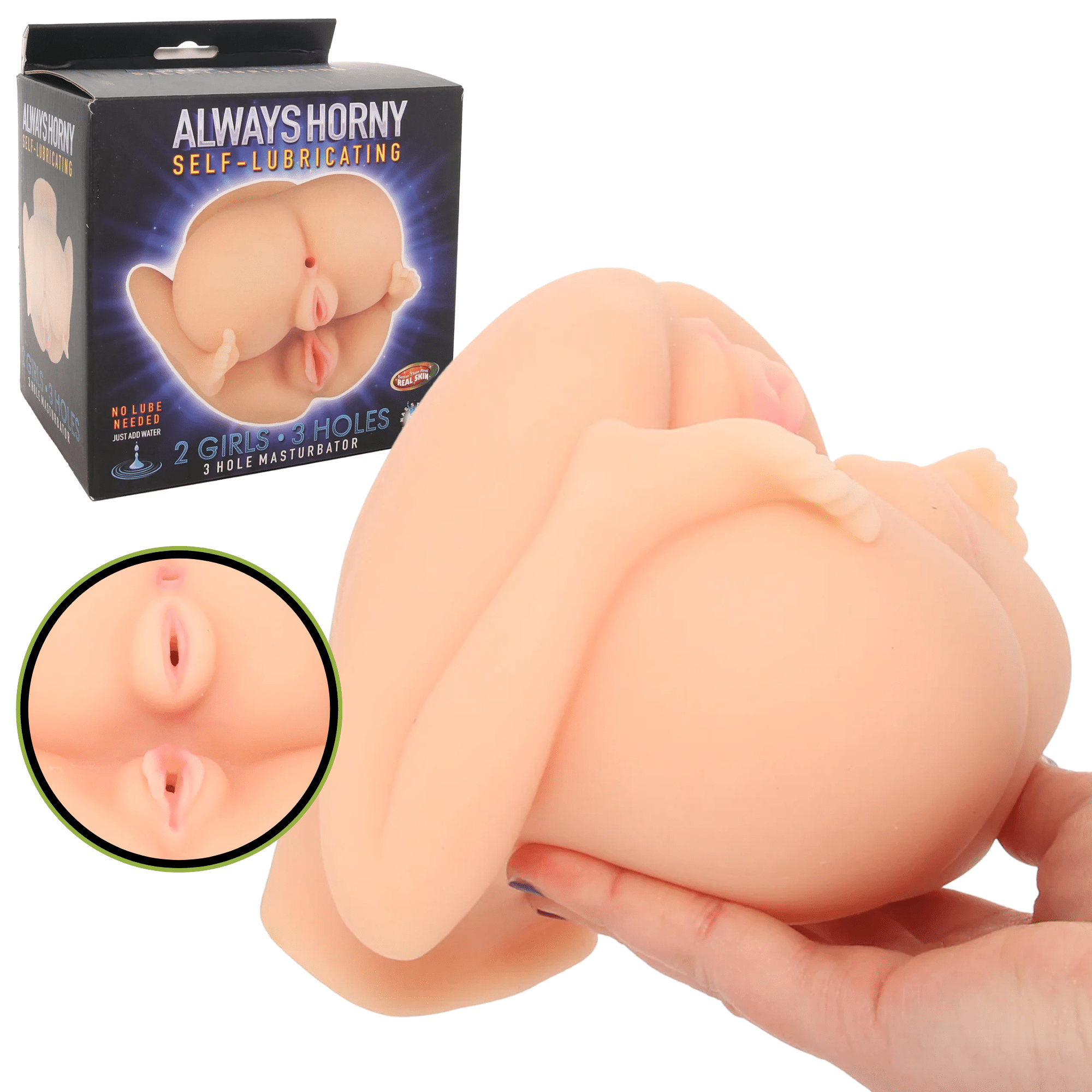 What truly sets the Nasstoys Always Horny 2 Girls 3 Holes Stroker Double Masturbator apart is its self-lubricating technology. Simply add a splash of water, and you’re ready to dive into an ultra-slick experience—no need for messy, extra lubricants. This feature not only enhances the feel but also makes cleanup a breeze.