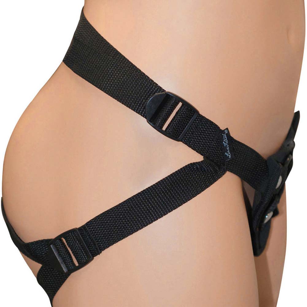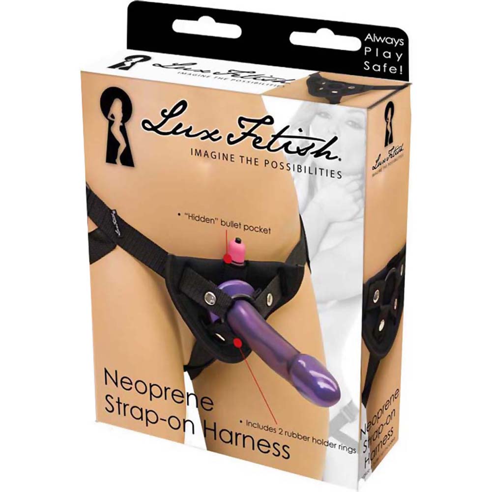 Give your partner the pleasure they want and deserve with Lux Fetish Neoprene Strap-On Harness. A comfortable secure harness in neoprene fabric, 4 way adjustable straps that fits up to 60` hips, and a perfectly placed bullet vibe pocket for endless clitoral stimulation is a great way for beginners to light up the bedroom. This strap-on can accommodate any dildo with a flared base, and includes 2 rubber holder rings.