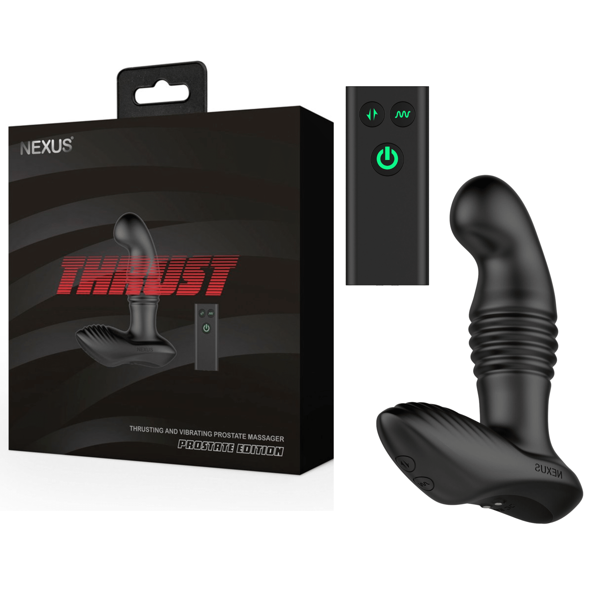 A revolutionary thrusting and vibrating prostate massager designed to elevate your intimate experiences. This premium pleasure product is the key to unlocking a world of pleasure, and it comes with a remote control for added convenience and excitement. With its perfect shape, it simultaneously stimulates the prostate and the perineum, ensuring your satisfaction reaches new heights.