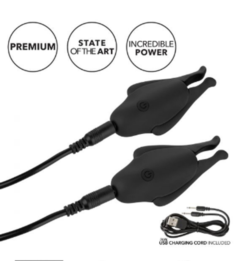 While the tickling vibrations tease the senses, the fully adjustable clamps let you control the thin line between pleasure and pain for a sinfully arousing experience. A single-touch button controls up to 45 minutes of vibrating pleasure. Recharge your pleasure in only 1 hour with the dual charging USB cable into the self-sealing charging port. Take you pleasure to go with the travel lock feature, simply hold the power button for 3 seconds to turn on/off.