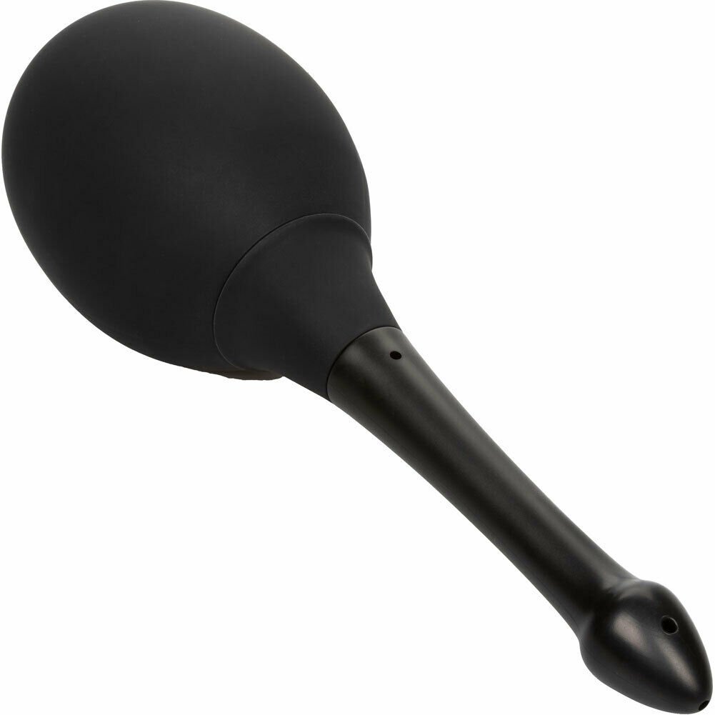 Color: BlacknMaterials: Silicone, ABS PlasticnPower Source: N/AnFeatures: Phthalate Free, WaterproofnAllergens: N/AnnDimensions:nBulb: 6 x 3.5 in.nTip: 5.75 x 1 in.nPackage: 4 x 5.25 x 13.25 in.