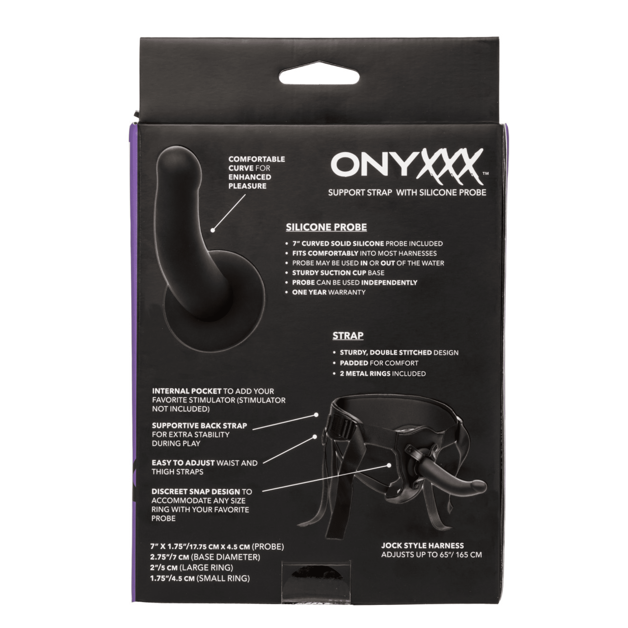 Elevate your intimate moments with the Onyxxx™ Support Strap On Harness KITS with Silicone Probe, a premium set designed for unparalleled comfort and pleasure. This versatile kit includes a jock-style harness, a 7-inch solid silicone probe, and two interchangeable metal rings, delivering a perfect fit and enhanced sensations with every use.