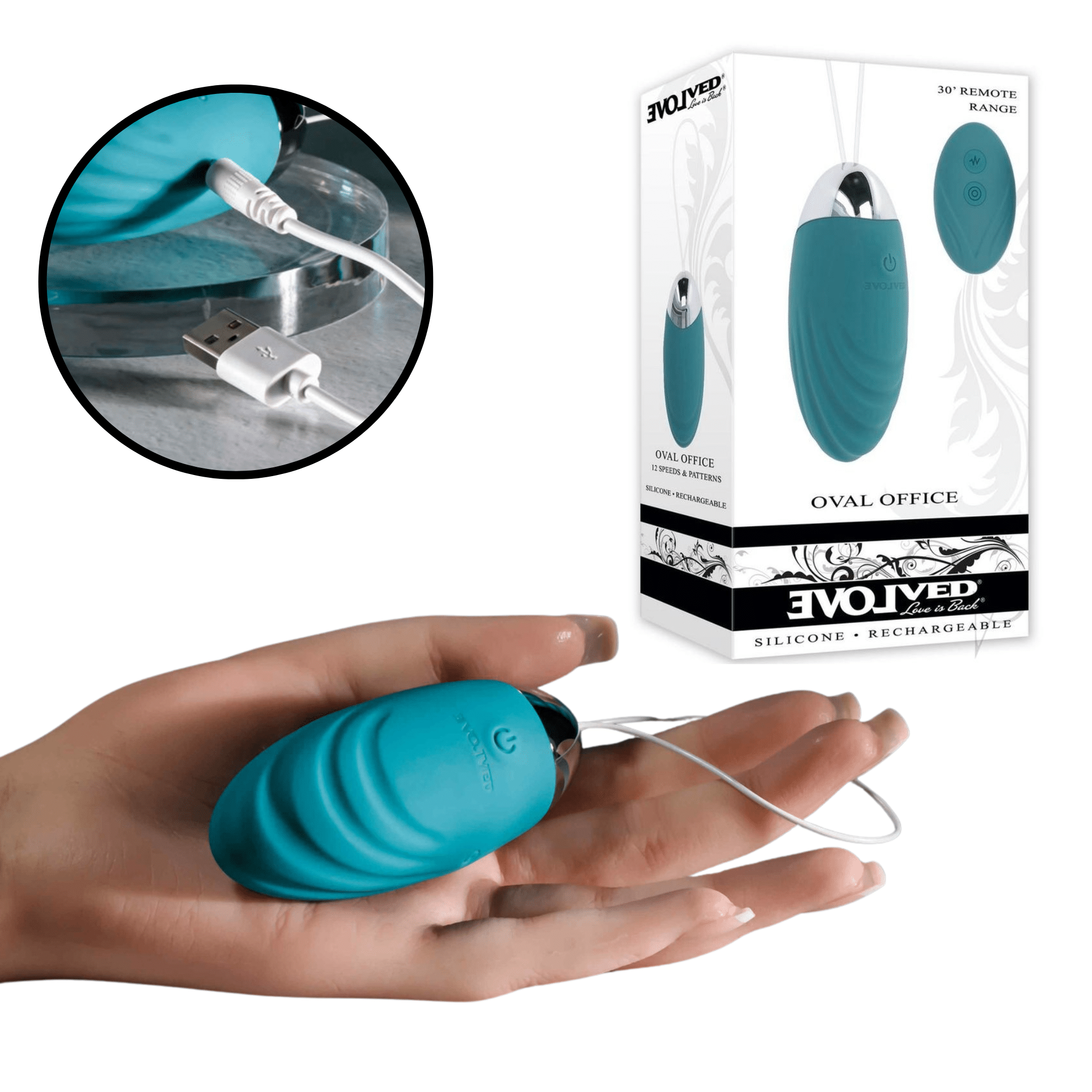 Elevate your pleasure with the Oval Office Remote-Control Oval Egg Bullet Vibrator. This sleek and powerful toy is designed to deliver intense vibrations right at your fingertips. With its remote control, you can effortlessly explore up to 30 feet of wireless excitement. The safety cord ensures easy retrieval, making it perfect for spontaneous fun and precise pleasure.