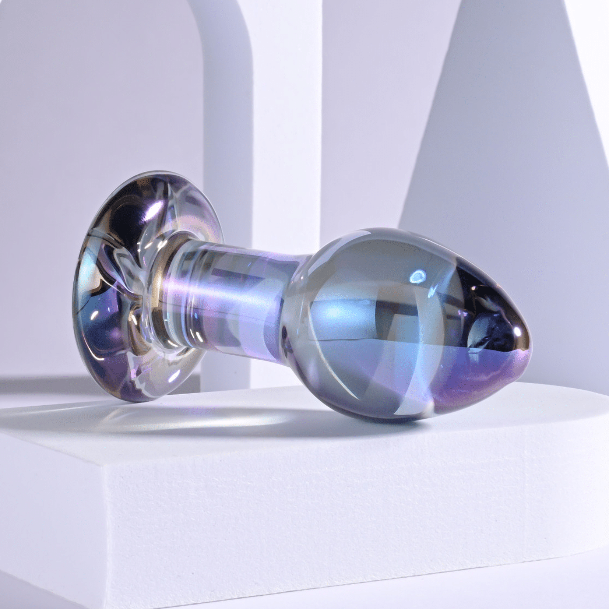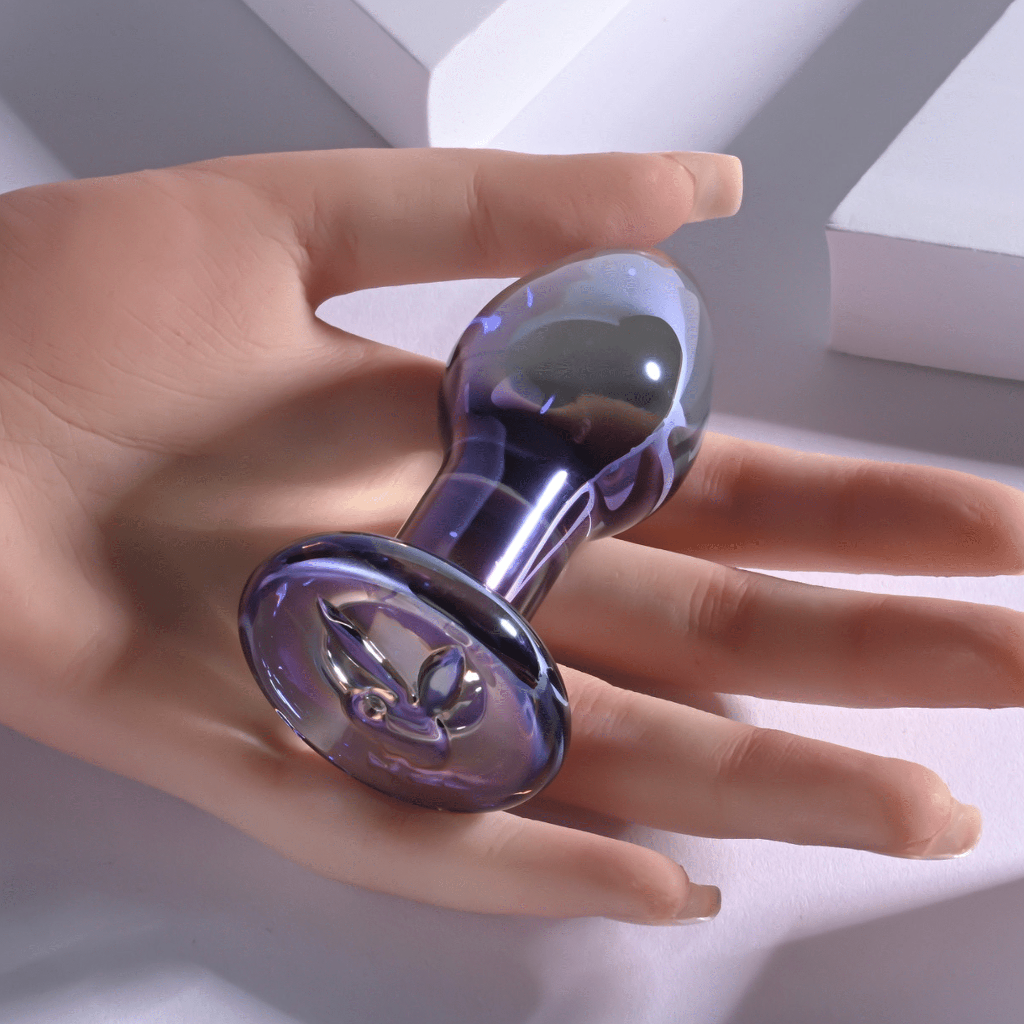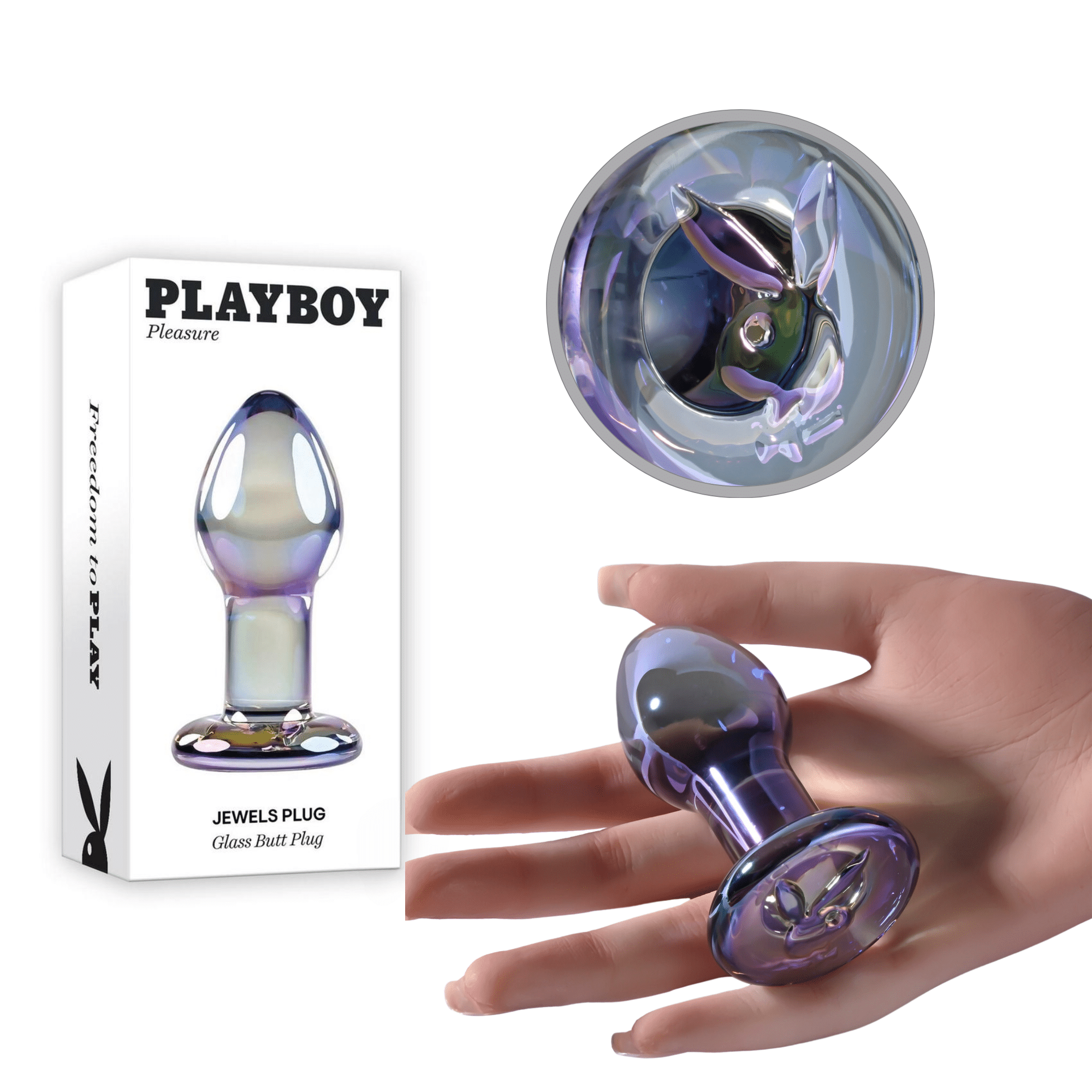 Introducing the Jewels Collection, destined to be a favorite in your sex toy drawer. The Jewels Plug is both gorgeous and stimulating. The bulbous teardrop shape provides a delicious feeling of fullness with a tapered tip that makes insertion easy and comfortable. Made of body-safe borosilicate glass, this Butt Plug shimmers with a crystal iridescent finish, and the flared safety base features the Rabbit Head Design. Experience temperature play by immersing the toy in warm or cool water before use.