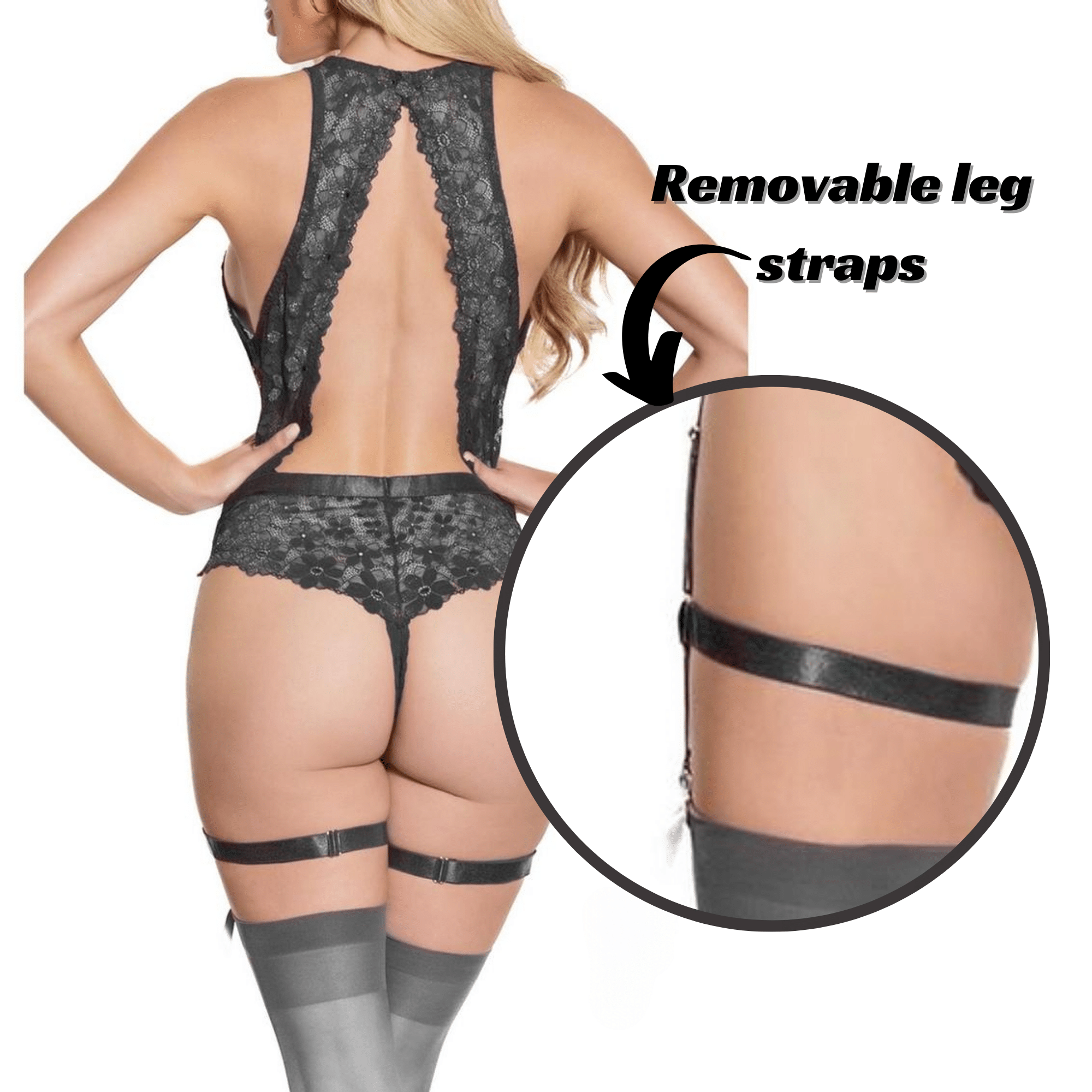 The Pink Pussycat Black Corset Crotchless Sexy Teddy And Bodysuit features intricate lace detailing and a corset-style design that enhances your silhouette. The crotchless feature adds a daring touch, perfect for those special nights. With removable leg straps, this teddy offers versatility and comfort, allowing you to wear it in multiple ways.