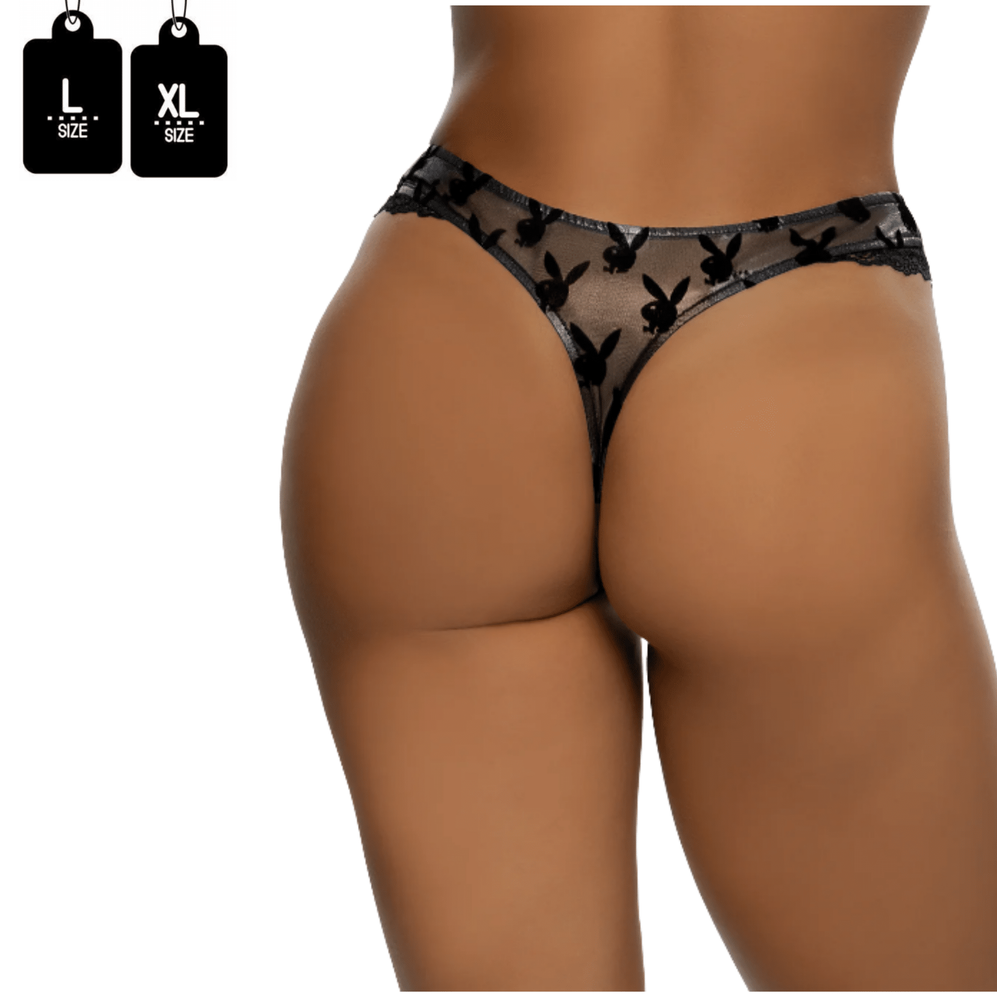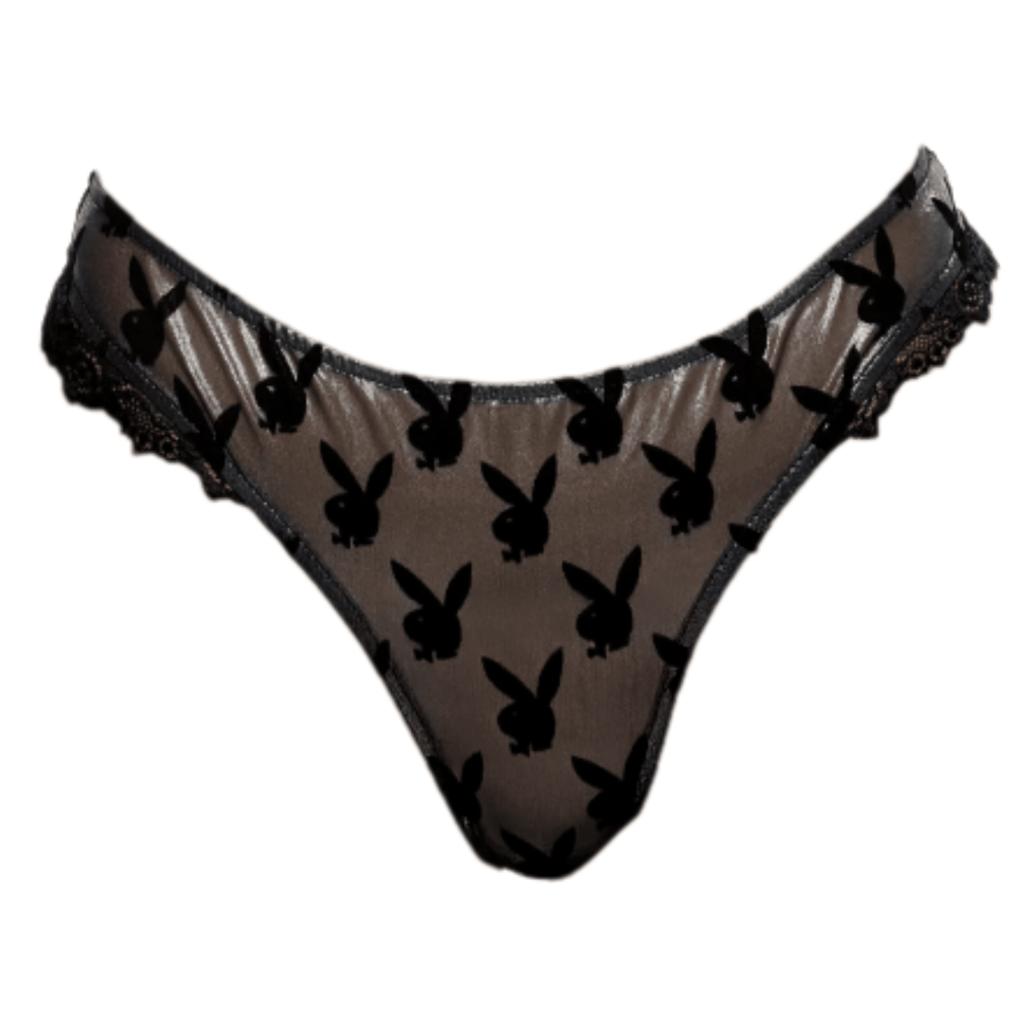 • Playboy Shimmer Bunny Thong Sexy Panties For Women Black