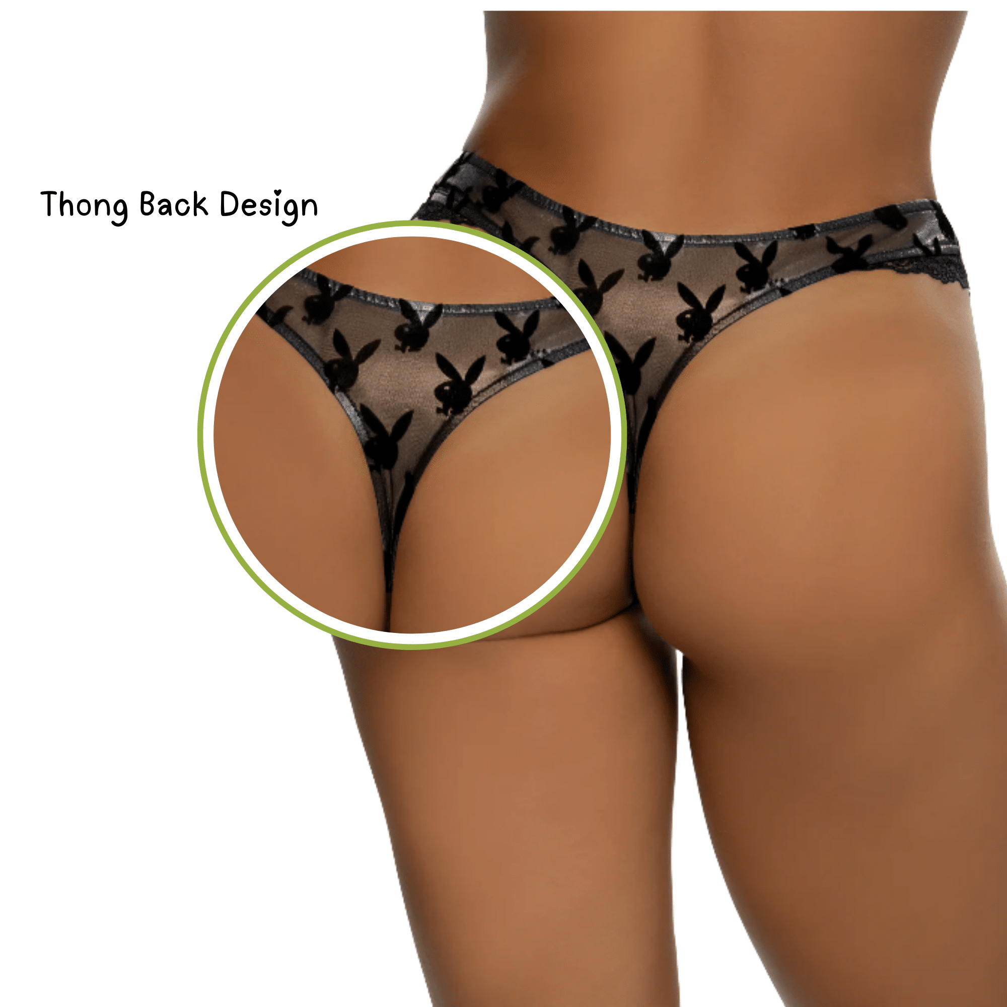 Playboy Shimmer Bunny Thong Sexy Panties For Women Black Playboy Shimmer Bunny Thong Se...