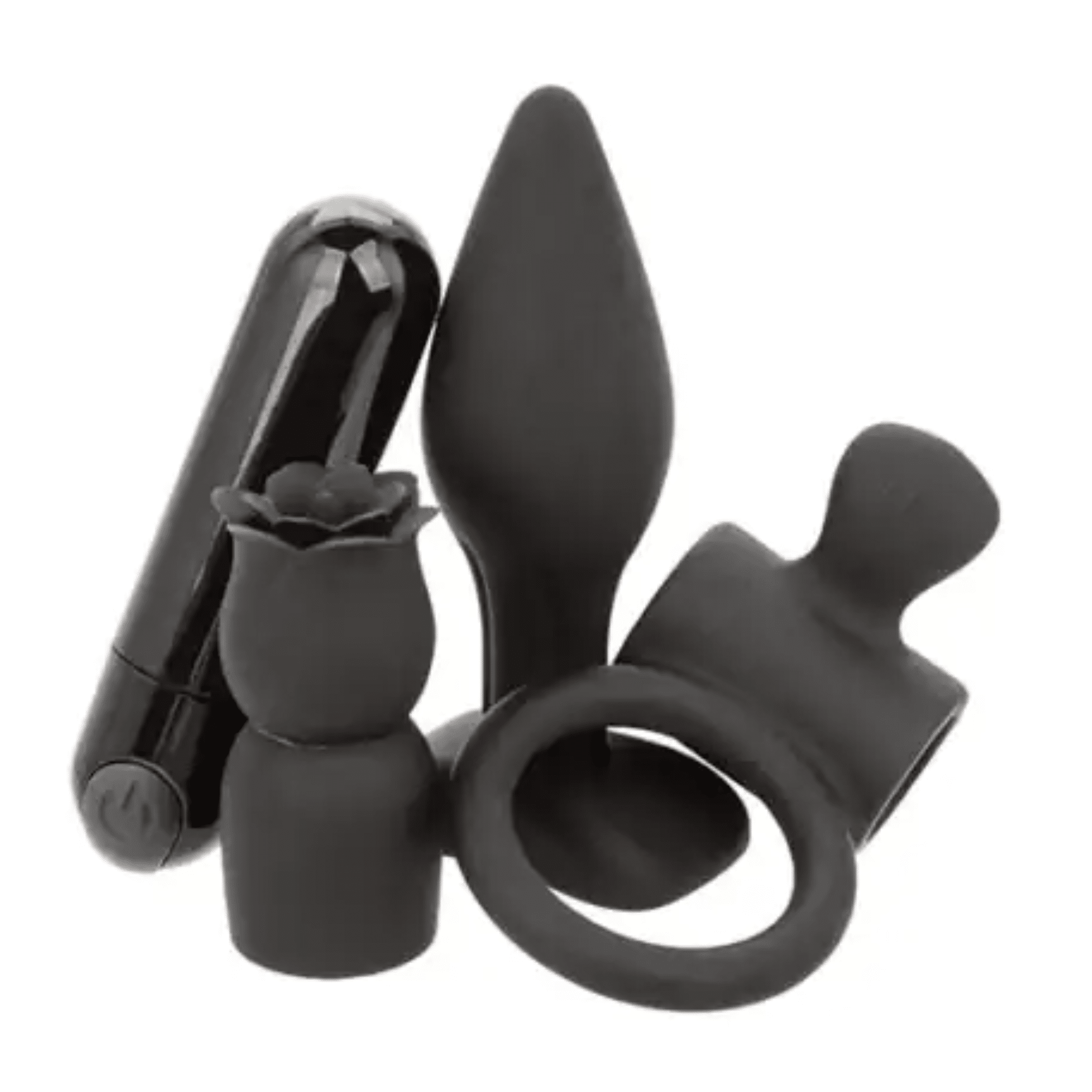 Unwrap a world of pleasure with the Pleasure Kits Allure Travel-Friendly Collection – Black, a premium vibrating kit designed to enhance your intimate experiences. This versatile set includes a rechargeable bullet vibrator, a teasing stimulator, a couples ring, and a sleek anal probe, all crafted for maximum satisfaction.