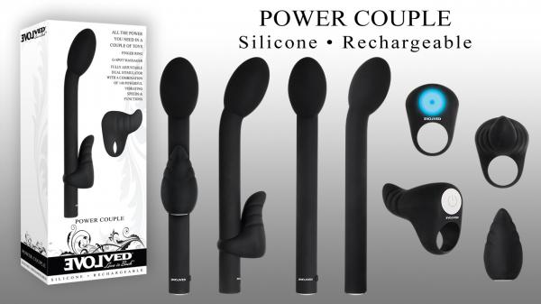 A simultaneous G-spot and clitoral orgasm is one of the most intensely pleasurable experiences available to a woman, and this pair of toys can help make it happen! The silky-smooth rounded head of the Power G is designed to stimulate the G-spot correctly, with a shaft precisely angled to reach its mark, and the Pinkie Promise provides clitoral vibrations that deliver body-melting sensations, not to mention erotic massage for him anywhere you place it. Explore all the delicious possibilities together, even in the bath or shower as both toys are fully submersible in water.nnPower Gn- Designed to stimulate the Grafenberg Spotn- Angled shaft and smooth rounded head targets G-spotn- Made from silky-smooth PU coated plasticn- 7 powerful speeds and functionsn- Elegant, simple one-touch controlnnDimensions:nTotal length: 8.25 in.nDepth: 1.5 in.nWidth: 1.75 in.nnPinkie Promisen- Pinkie shaped vibrating finger ringn- Perfect for clitoral stimulationn- Massages men`s erogenous zones toon- Slips over finger with comfortable gripn- Grooved body for added pleasuren- Made from creamy smooth siliconen- 20 powerful vibrating functionsn- Blue LED light in button for visibilitynnDimensions:nHeight: 2.4 in.nDepth: 1.73 in.nWidth: 1.31 in.