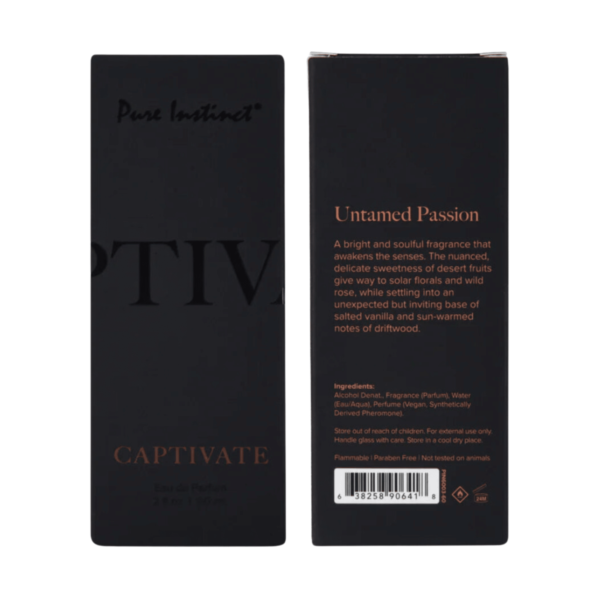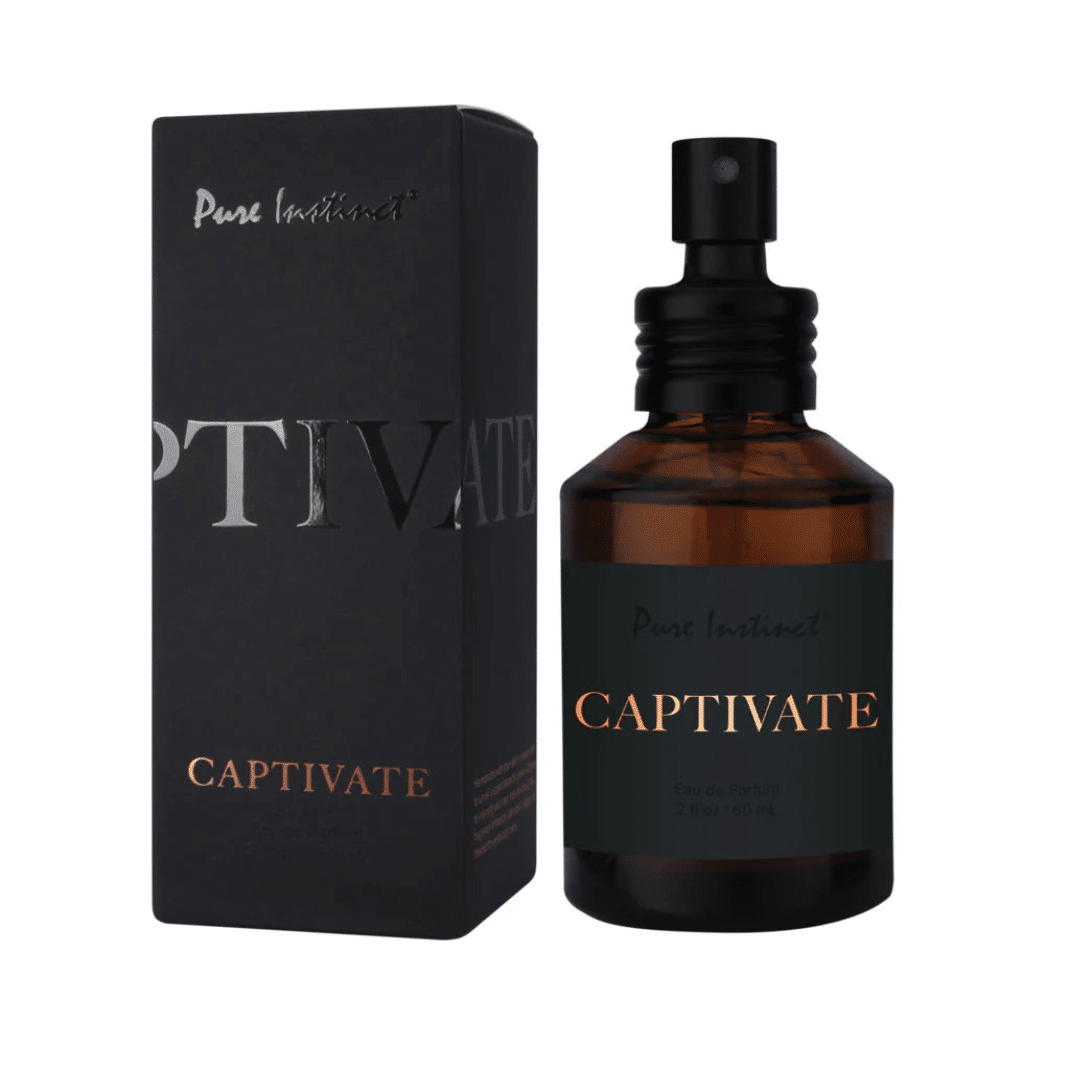 Experience the power of attraction with Pure Instinct Men’s Collection Pheromone Perfume – 2 oz Captivate. This bold and soulful fragrance is expertly crafted to awaken the senses and elevate your confidence. The enticing blend of desert fruits, solar florals, and wild roses creates an irresistible scent that settles into a warm and inviting base of salted vanilla and sun-kissed driftwood.