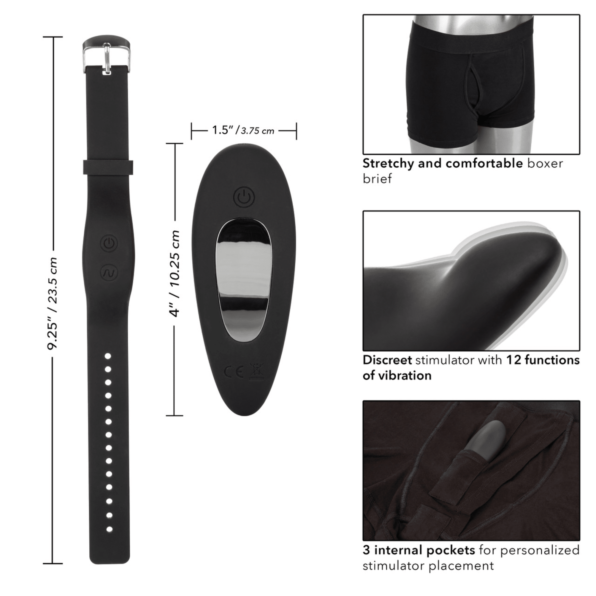 Along with an always-flattering pair of classic boxer briefs, the Set includes a curvy, firm vibrator controlled by a super-discreet wristband remote. There are three snug little holding pockets stitched in through the crotch area, which lets you position the vibe anywhere that feels amazing.