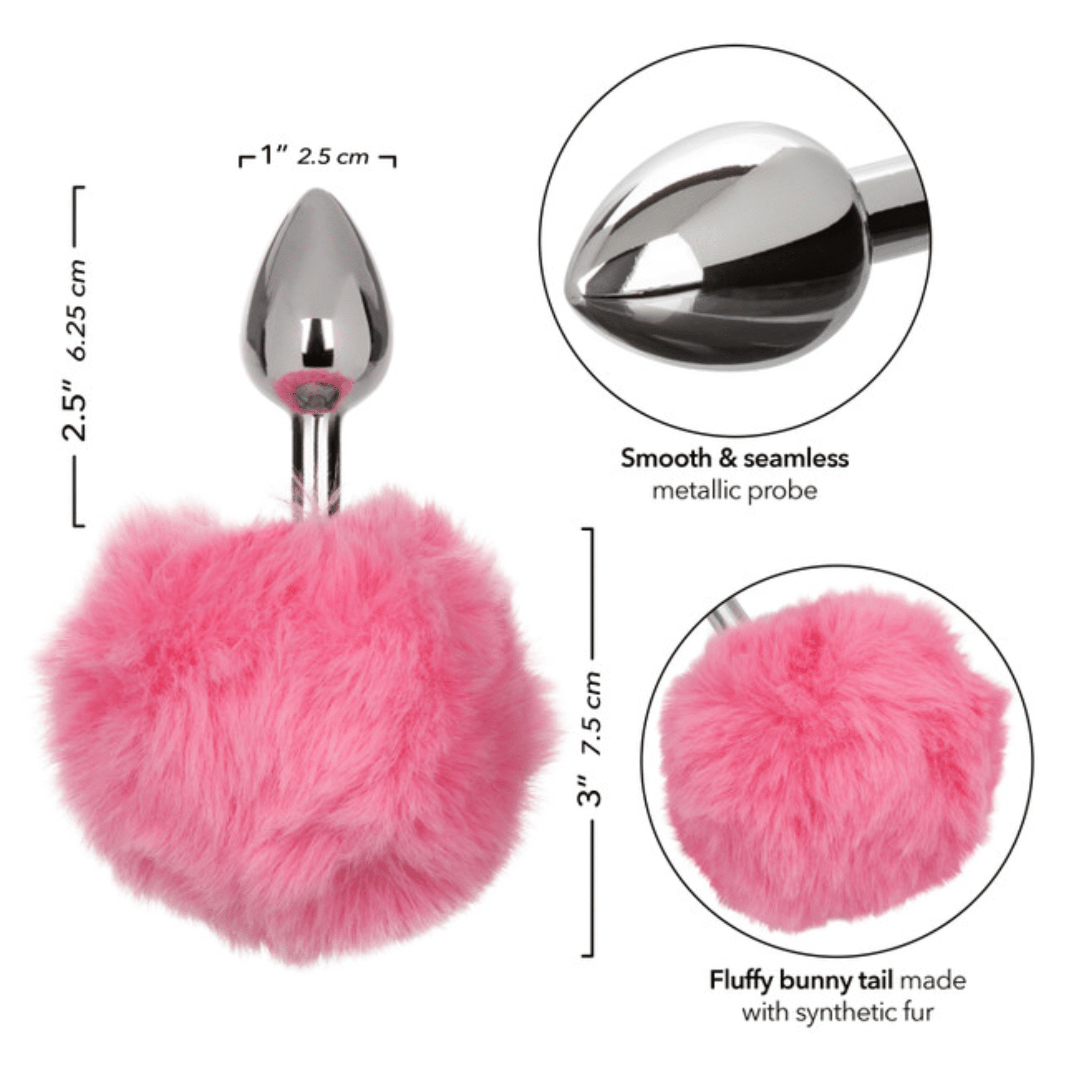 Unleash your playful side with the Running Wild™ Bunny Tail, a sleek and sophisticated metallic probe adorned with a whimsical fluffy bunny tail. This charming accessory adds fun and adventure to your sensual experiences, perfect for those who appreciate a touch of whimsy.