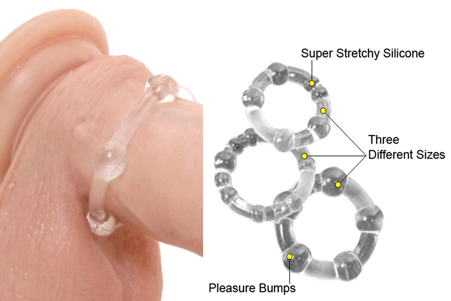 Three super stretchySilicone rings. Includes three different sizes. Used properly, it helps to enhance sex and make you stay hard longer!