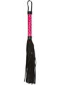A sexy flogger for frisky fun. For both lighter users and more hardcore ones alike, this whip gives a just the right amount of pain or pleasure depending on your preference. Abundant suede leather tails are encased by a durable pink vinyl handle. A handy loop at the top of the handle makes for easy storage and/or display. This whip is the perfect complement to the Sinful line. Light yet sturdy. Each strand combines for a soft bite response to a willing partner.
