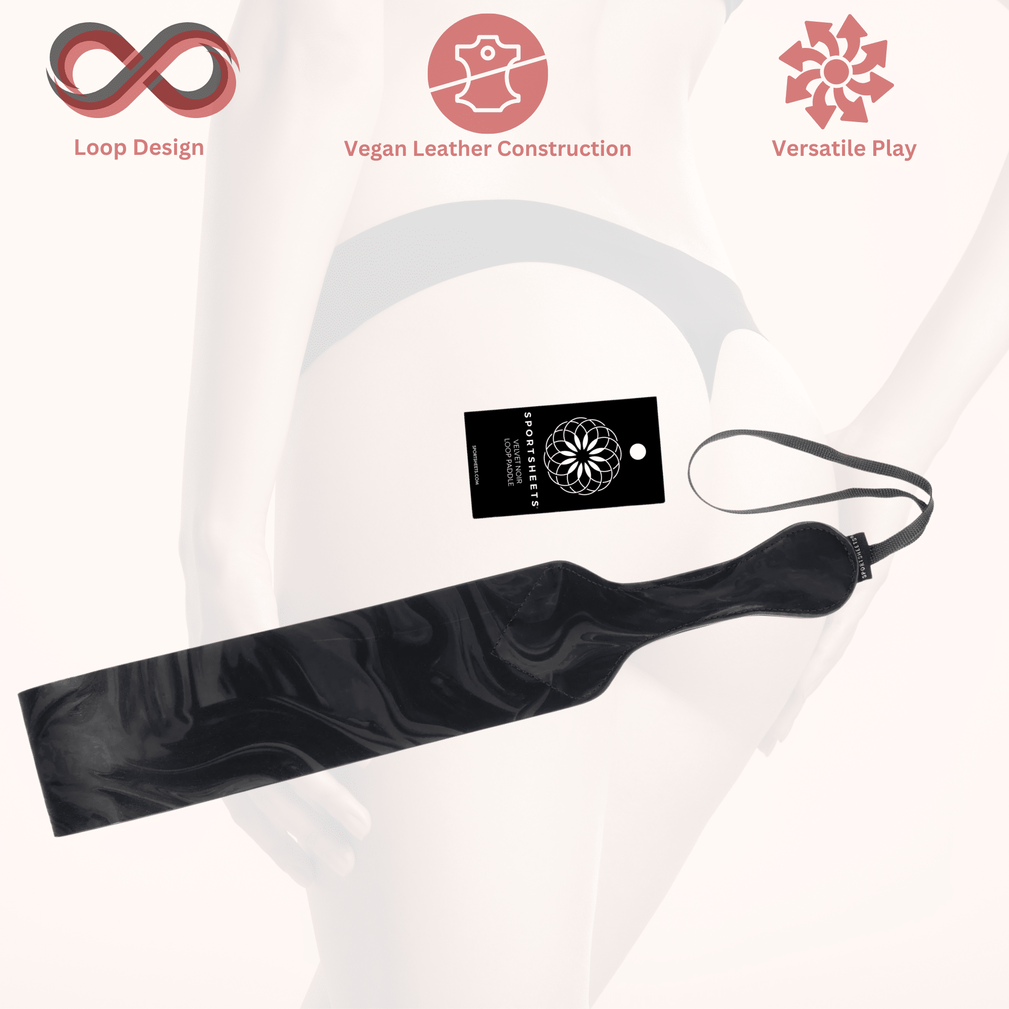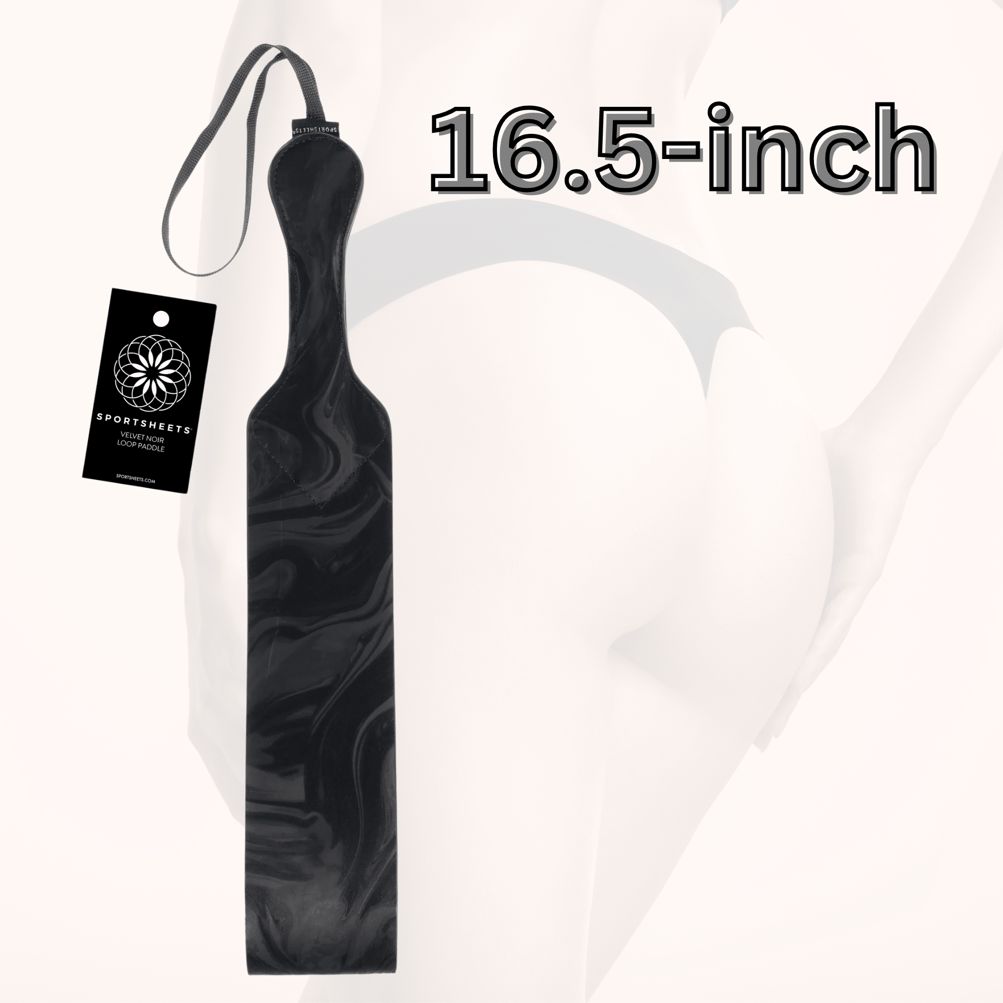 Indulge in the art of sensual domination with the Sportsheets 16.5-inch Vegan Leather Velvet Noir Loop Paddle. Designed for those who appreciate a slow, tantalizing build-up, this exquisite paddle delivers deep, thuddy impacts that heighten anticipation with every touch. Whether you’re teasing with gentle strokes or delivering firm, commanding swings, the unique marbled black loop ensures every sensation is both exhilarating and unforgettable.