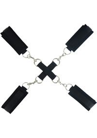 This beginner cross tie system aides in immobilizing you in the most vulnerable of positions while your partner has full access to all your naughty bits! The simple design offers loads of versatility, so let your imagination run wild! Whether you are in for a night of erotic massages, sensual tickling, or any form of imaginative sex play, you are sure to be pleased and teased with the Stay Put Cross Tie system from Frisky. This five piece system features a center hub with four D rings to attach each cuff, so it can be used in conjunction with many other types of bondage toys. A swiveling claw style clip lets you attach each restraint to the center hub. Each cuff is made of comfortably durable neoprene, and features a Velcro strap for adjustability. Measurements: Each cuff measures 13.5 inches in length, and 2 inches in width. Center hub measures 5.25 inches in width. Material: Neoprene, Velcro, and nylon.